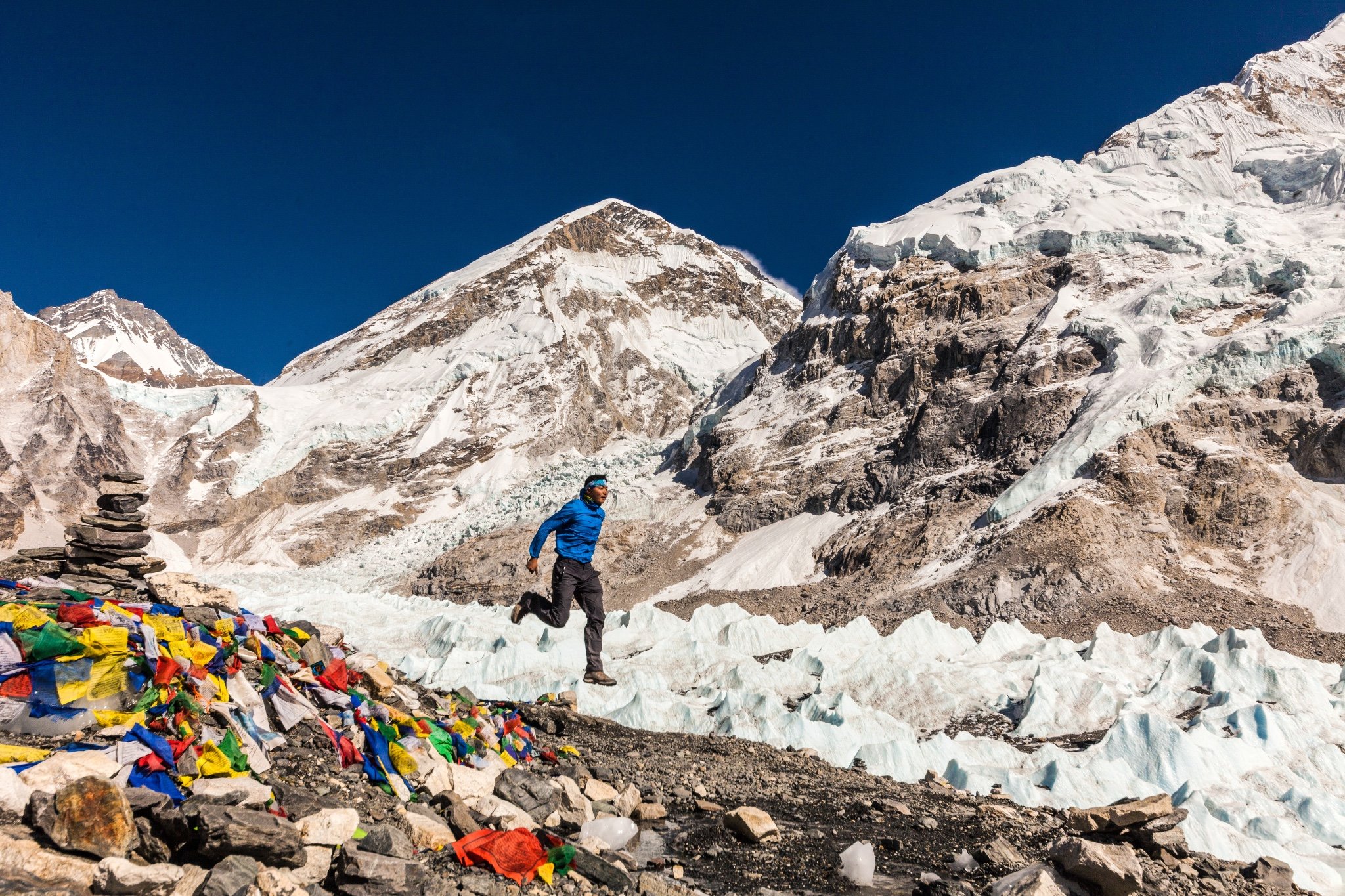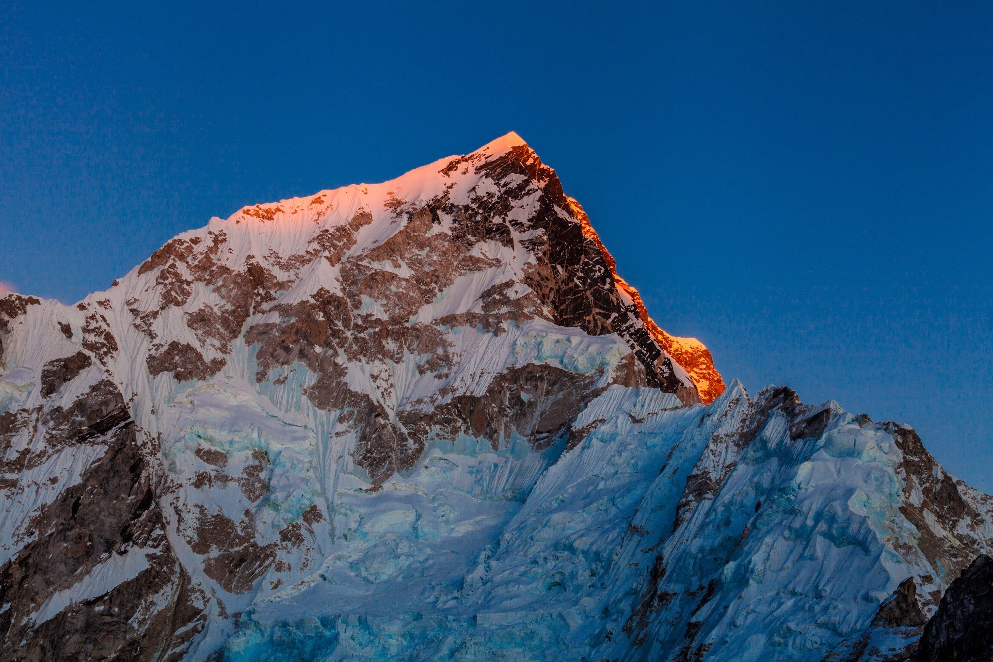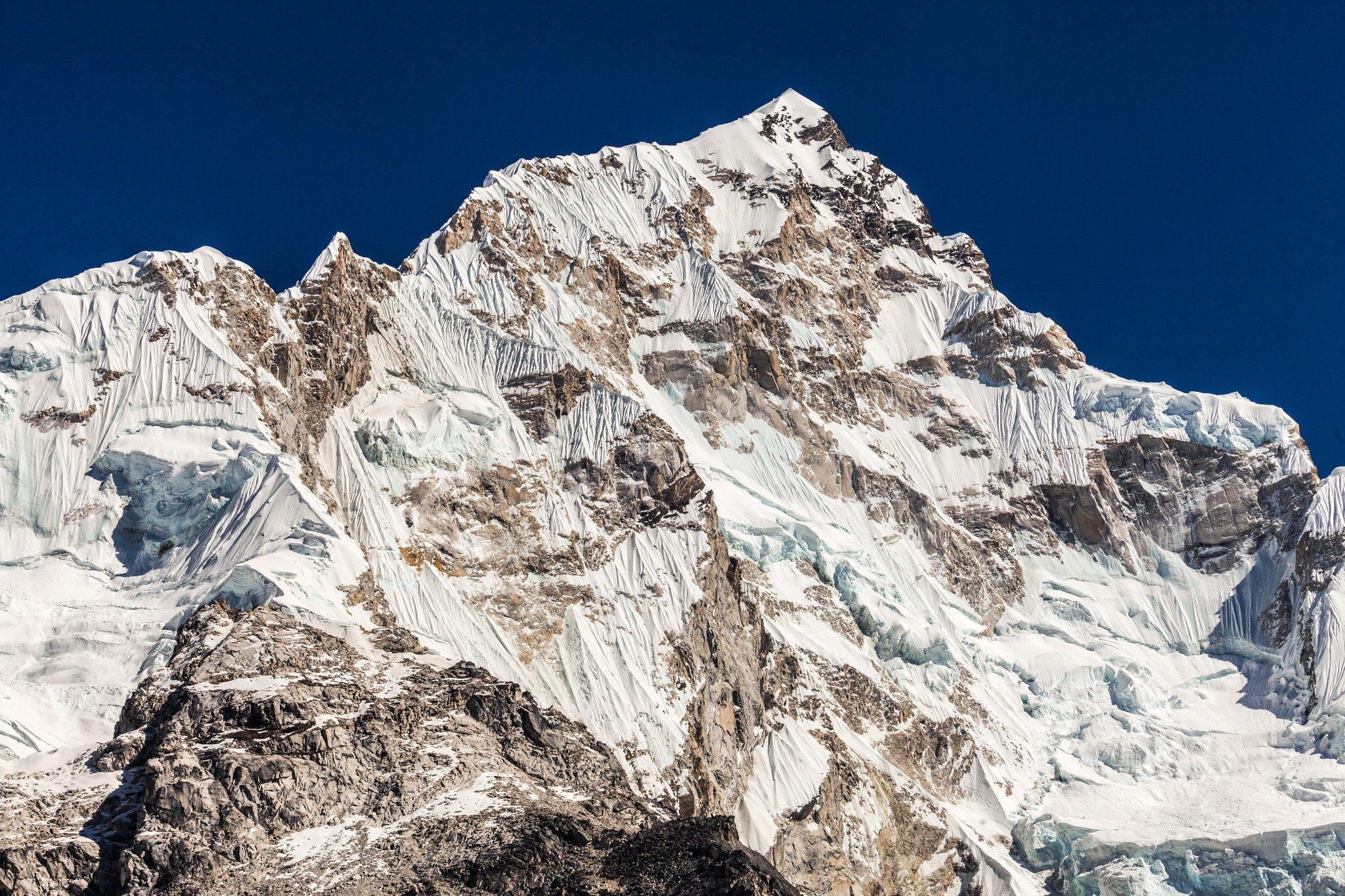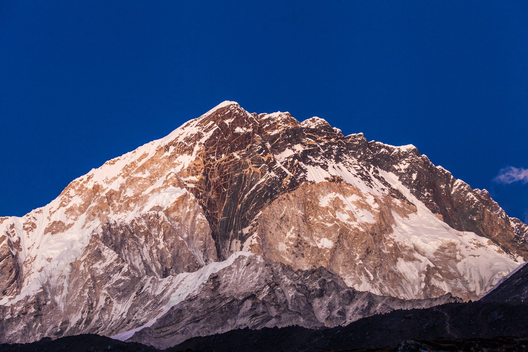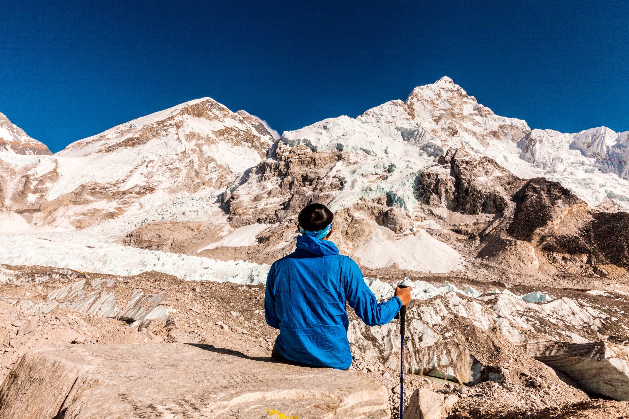 雪山前面就是昆布冰川,应该是地震的原因,冰川上面都是有很多沙石,但是非常壮观,冰川的尽头就是珠峰大本营。