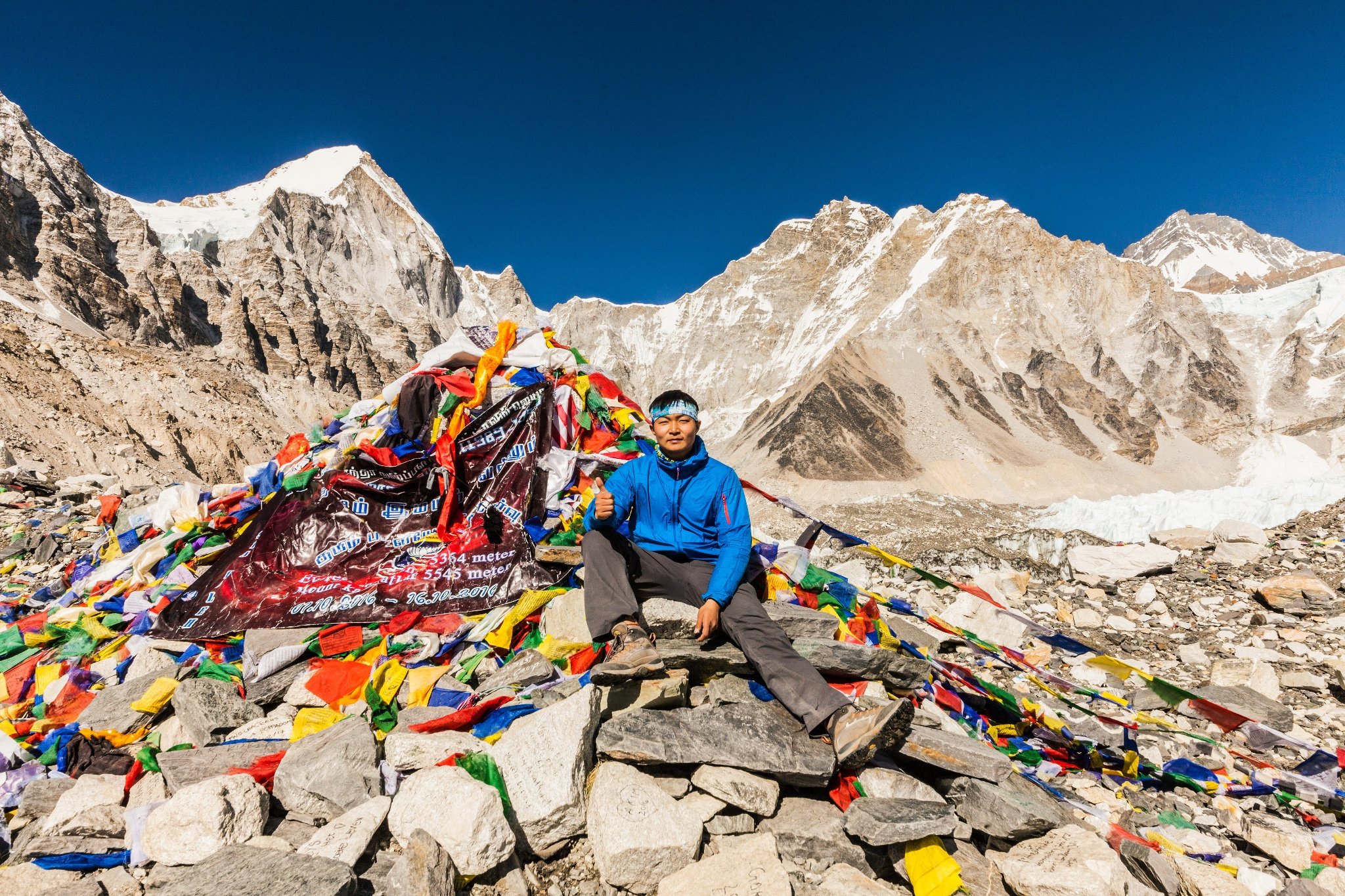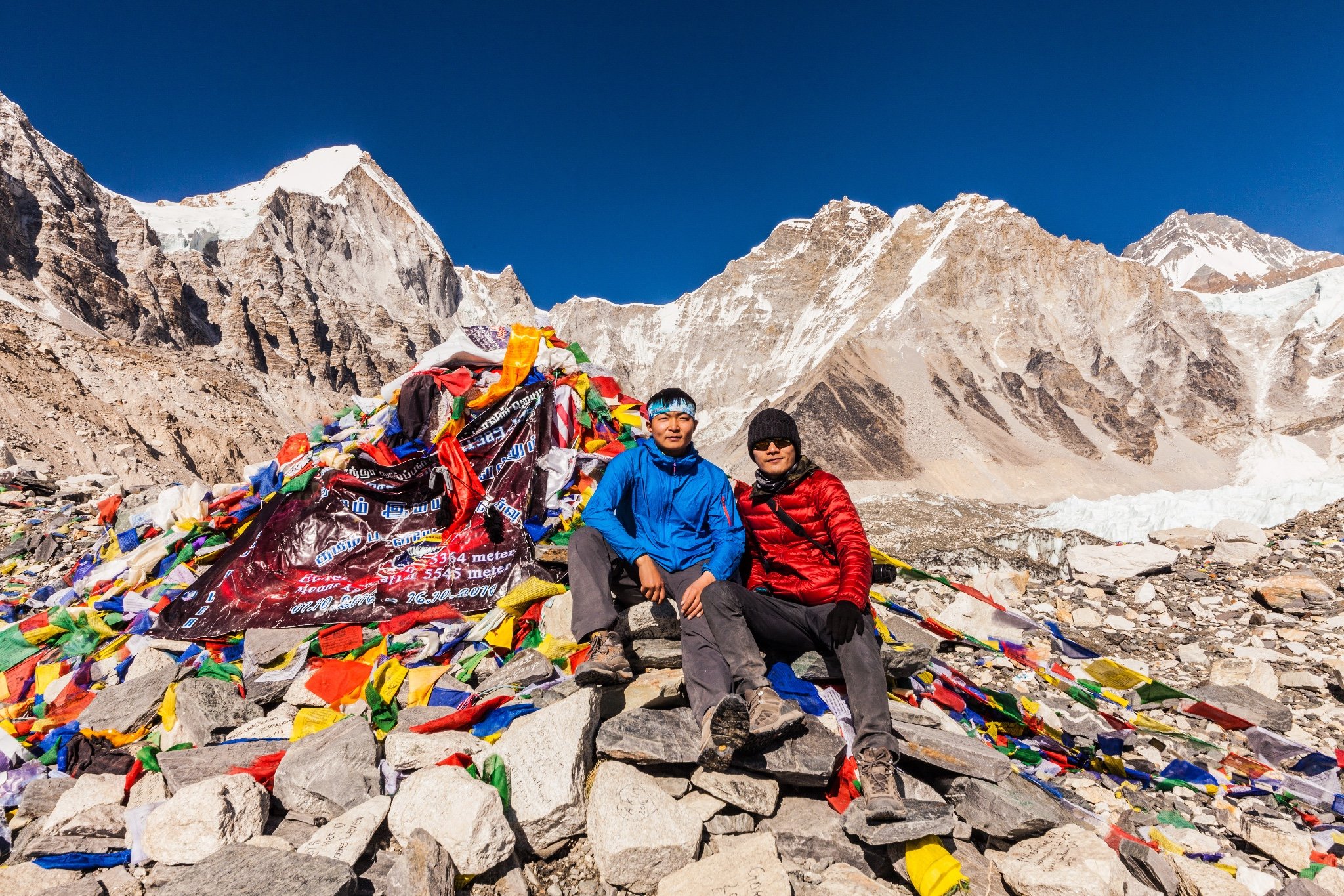 早上我们八点半开始出发,开始碎石还好,大概走了两公里开始,爬坡碎石,下坡爬坡,一直这样,很多地方路都看不清楚,加上海拔不断升高,张坡头也疼,这样中午11点半到的Gork Shep 到了客栈马上吃午饭,我们计划下午就去EBC珠峰大本营,之前我想的应该很近,结果一走才知道,路更难走,幸好我放了很多东西在客栈,就带了相机三脚架和水,所以相对来说还好,但是回来的时候走到最后都想闭着眼睛走了。Gork Shep 的客栈吃饭水更加贵了,这是物价的最高点,其实当你来走了对于这个物价还是很理解的,真的好累的一天。我们下午两点半就到珠峰大本营了,有很多人在这儿拍照,今天风景应该是到了一个顶峰,一路全是雪山,风景美到不行,一直沿着昆布冰川前进,珠峰大本营就是昆布冰川的起点,我们到后拍了很多照片就开始回去。