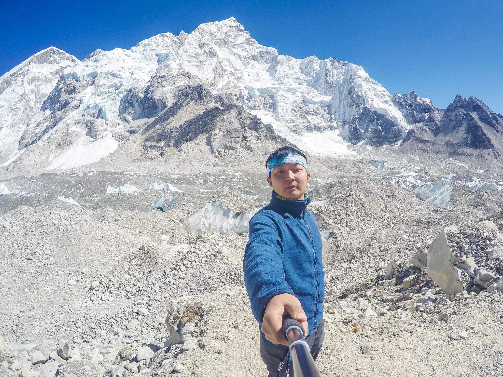 珠峰大本营,这里每年的10月份就像赶集一样,到处都是人,都是登珠峰的登山者,最兴奋的一天,我终于到了珠峰大本营了,然后就开始了自拍模式。