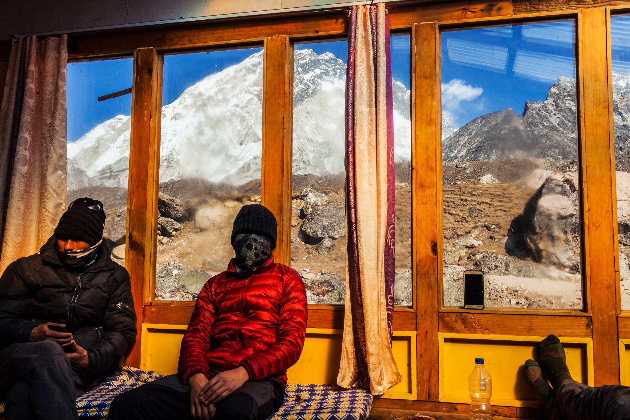 今天我失误了,两个澳洲小哥到大本营就开始回去去Kala Patthar 看日落,我们是计划的早上去看日出,后来我在客栈后山上拍日落的时候才看到珠峰好美,可惜我在山下就能看见珠峰的一个山尖,不开心呀!晚上在客栈都不想吃东西,外面超级冷,围在火炉边烤火。