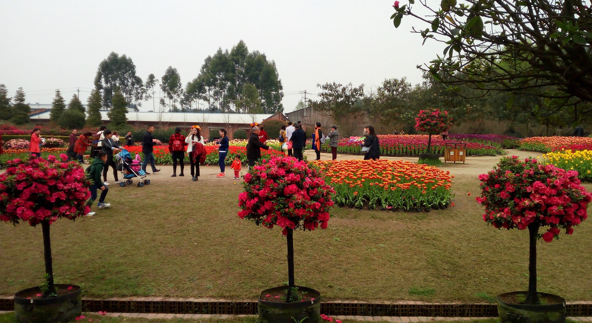 饭后去花舞人间。到了那里人很多,几乎没有停车位(成都人特会生活,周末一般不在家待着,多数举家出游)。花舞人间从名字上就可得知是个大花园。