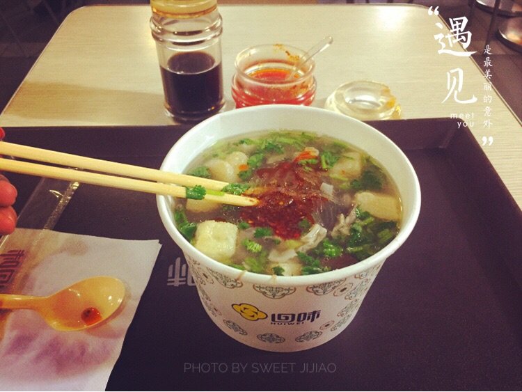 中午下课就赶过去,没来得及中午饭,正巧返点,而且来南京3次了,大家推荐的南京特色名吃 回味鸭血粉丝汤一直没吃,高铁站正好有,去尝尝来一碗,汤很鲜,放点辣椒和醋,对我的口味了,汤都喝了,嘻嘻(●'◡'●)