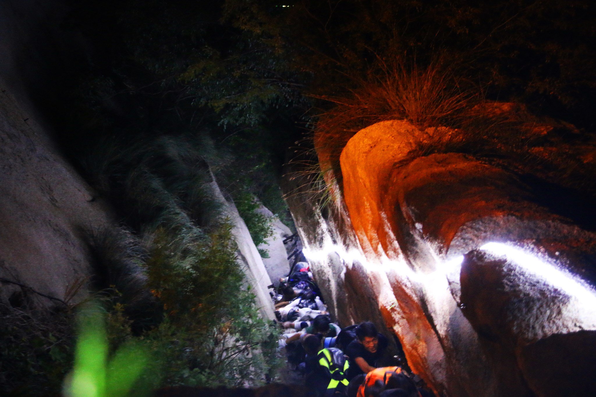 从玉泉院出发,尽是坡路并不险峻。做好登山的一切准备,吃过晚饭,晚上10点半出发,剑指华山之巅