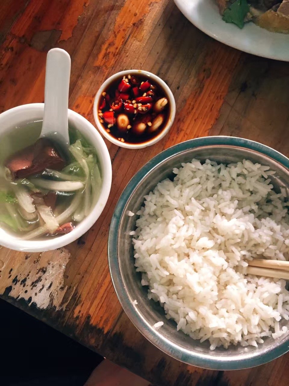 -Mary12172017-05-17《寻找国内最美小岛-涠洲岛》中提到的 百年油饭 攻略这是大发带我去的一家油饭店,鸭血什么的,这家油饭真的超好吃,米饭里有料汁的,我也不知道具体位置,是在老街附近,不知道的可以问大发😜。来自游记寻找国内最美小岛-涠洲岛