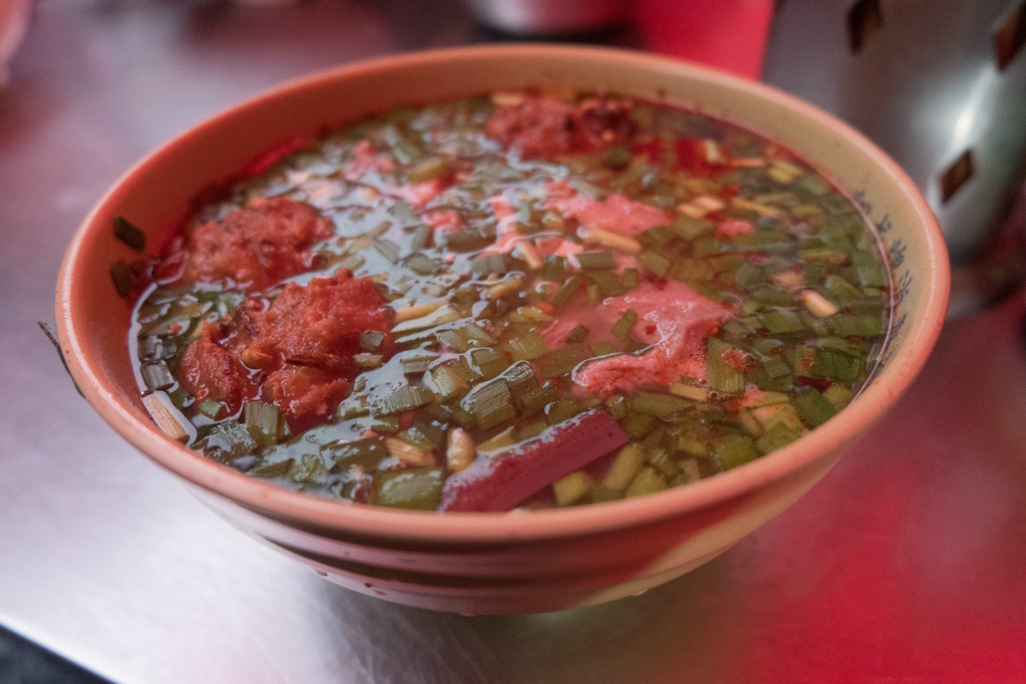 穿过丽景门向里直走,看见最多人排队的那一家,就是高记了。很多人会选择加烧饼吃,但是我们自从经历了西安的泡馍后,对于汤+面饼的组合带有深深的恐惧,就没点烧饼。汤不算很咸,丸子挺好吃的,我们点的是20块的豪华版,也是15块的普通版,可以自由选择。对了,看看这碗汤,不吃葱星人快快退散吧~