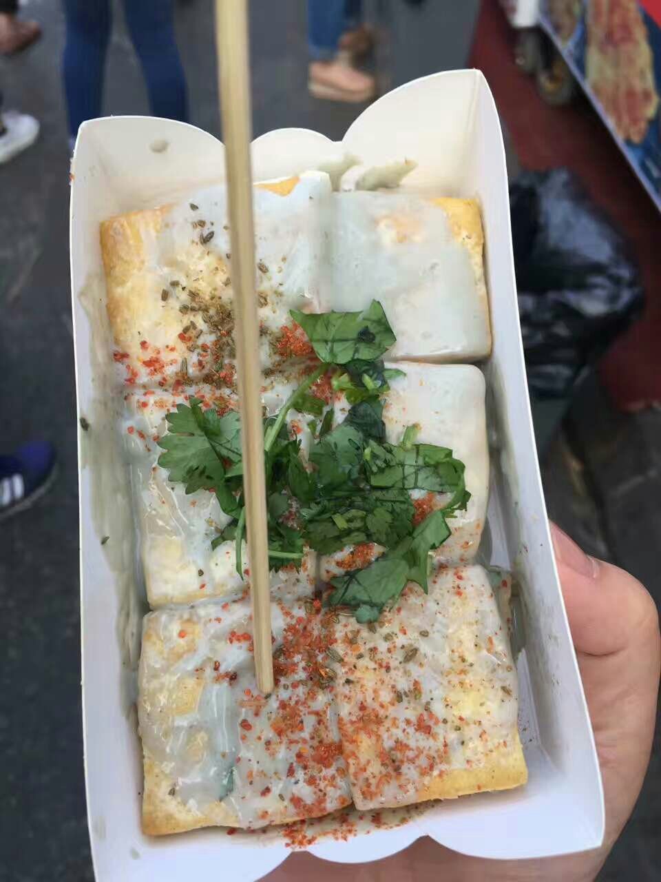 臭豆腐,这个买时候看好了,很多都是豆腐煎后刷的臭豆腐汤,味道不正宗。