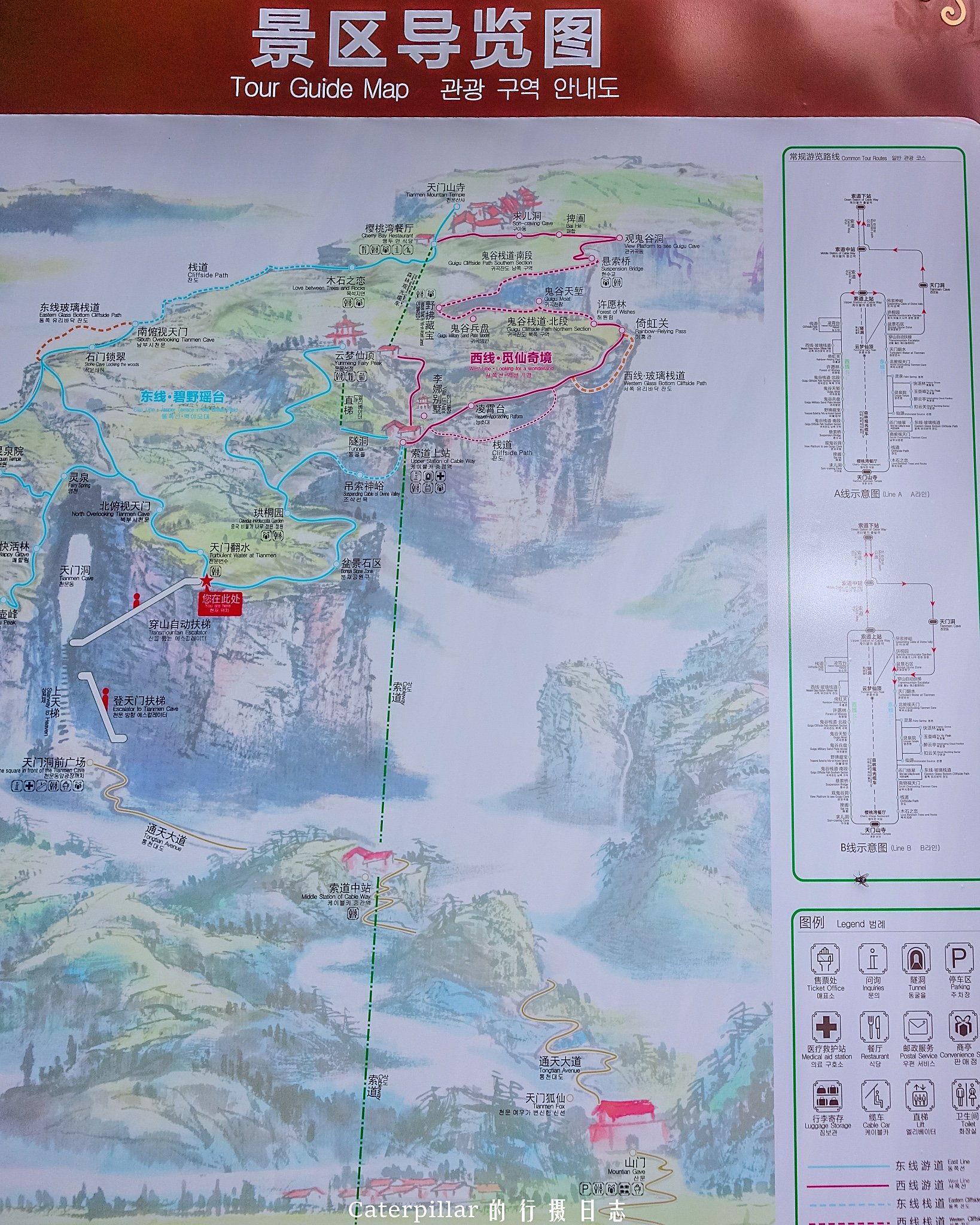 建议坐车上山,再坐索道下山,因为早晨的天门山容易的云雾笼罩,坐索道看不到什么景色
