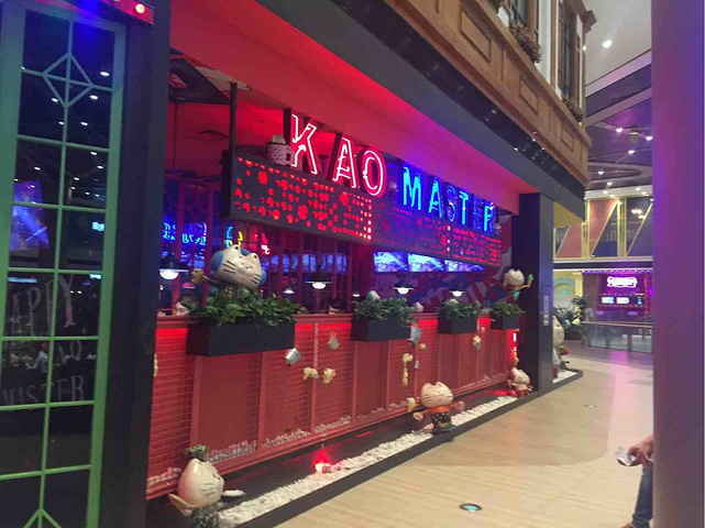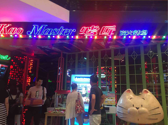 烤匠是一个吃烤鱼很不错的地方,最主要的是味道好吃,就占据了很大的优势。【地理位置】成都的烤匠开了几家,这家在大悦城商场里,大悦城商场在武侯区大悦路上,公交车84路,92路,139路都可以到,92路比较近,大悦城站下车就到了,店铺在商场的4楼,旁边有一个星美影院,很好找。【餐厅环境】餐厅装修比较独特,应该是店家想营造一种很嗨的氛围,用的色彩艳丽的墙面颜色,又配上深色的家具和桌椅,店铺里的灯光开的很暗,整体感觉和水货有点像,但是给人的感觉会比较的嘈杂,特别是餐厅生意好人多的时候,不过应该年轻的顾客会比较喜欢这种装修风格。【推荐菜品】首先是饮料,青柠气泡,28元一份,这里的菜都很辣,所以基本上都会点饮料,这里的多人份饮料也只有一种,就是青柠气泡。装饮料的容器很特别,像啤酒一样是一扎的,还有个开关可以放饮料出来。里面有很多冰块,有柠檬,还有几个切片的樱桃番茄,看起来很漂亮。口感还是偏柠檬味,不是很甜,比较清淡,但是还是很解辣。包浆豆腐,28元一份,很有卖相,一块块的豆腐排成排,上面有肉末,有芹菜粒,还有小米辣,这里的包浆豆腐不辣,豆腐也很嫩。来这里吃饭一定是要点烤鱼的,点了两个烤鱼,一个是酸菜裸斑鱼,119元一份,一整条鱼,上面铺满了酸菜,吃起来酸菜味道很浓,里面有野山椒,本来以为酸菜烤鱼不是很辣,但是里面的野山椒很辣,麻辣诱惑豆花黔鱼,139元一份,这个鱼烤出来很辣的,不能吃辣的人慎点,里面有豆花,是已经分开成一小块一小块的,很入味,吃下去像豆腐,黔鱼的鱼肉也很嫩,刺也少,整体感觉很辣,但是很香。烤鱼里可以点素菜加进去,加的土豆,莴笋很好吃,都很入味,每一份烤鱼都会配一份面条,其实就是方便面,拌着烤鱼吃,还不错,吃完了也可以加,叫匠匠家的面,6元一份。果蔬大拌菜,13元一份,就是蔬菜沙拉,可以用餐前吃,这样可以很好的荤素搭配,吃起来很清淡,可以解一下油。如果吃烤鱼吃的很辣,还可以点红糖糍粑,10元一份,红糖冰粉,5元一份,可以缓解很多的辣味。烧烤类比较好吃的有烤脑花和烤茄子,都很不错,看了一下,几乎每桌顾客都有点。【价格】这里人均消费在同类型的店里还是算比较偏高了,差不多80一个人左右吧,可以在招商银行上团购券,88元买100元,或者直接冲会员卡,充值600元,当场可以用,部分菜品可以享受会员价,并且还整单打9折。