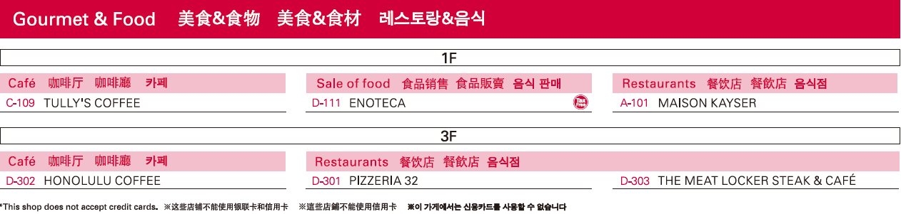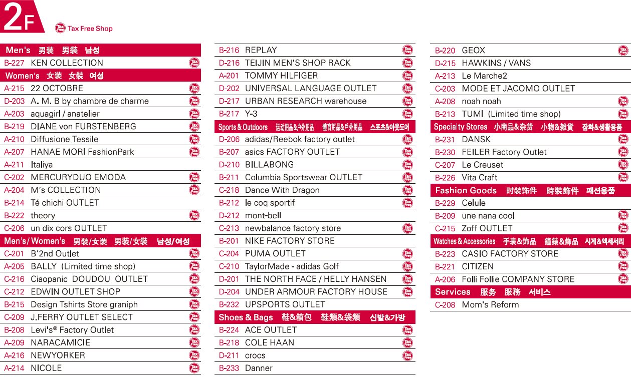 免税相关信息。店铺平面图 1F。商铺目录 1F。商铺目录 2F。热狗超级好吃!商铺目录 美食。到达