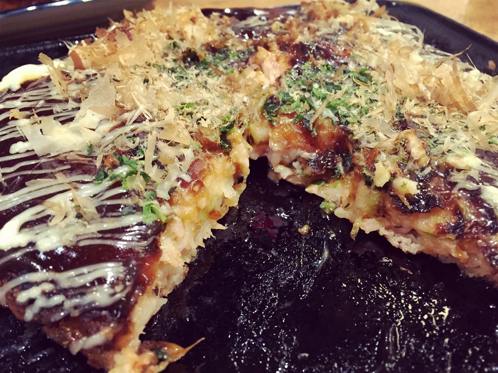 晚餐是最期待的米其林之旅,因此中午从简了,老是看到磯丸水产,回心斋桥就选这儿进去了,虽然tabelog评分只在3左右,可是我却吃到了至今仍让我流连忘返的海鲜盖饭,此外我们还点了烤扇贝和大阪烧、盐酥鸡。巨巨巨满足啊!海鲜盖饭食材新鲜,好感度直接提升,配上酱汁,没有更绝配的组合了!经济又实惠,真好!