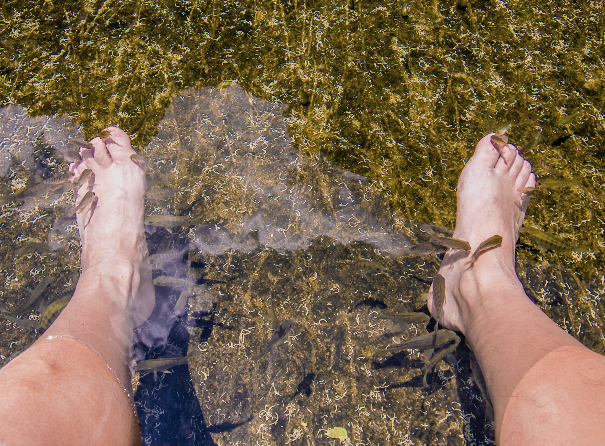 直到我就趁等车的时间赶紧脱了鞋就下水试试,分分钟,几十条鱼就向着我的脚围了过来,然后就疯狂的亲我脚丫,就两个字“舒服”!