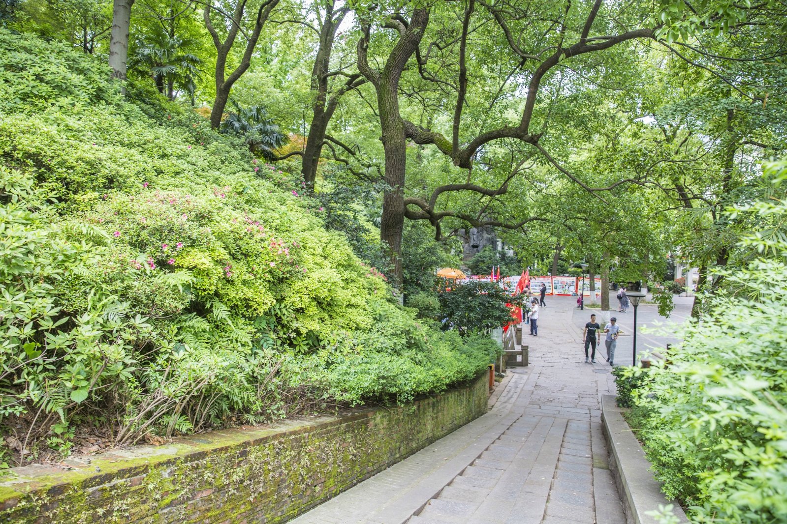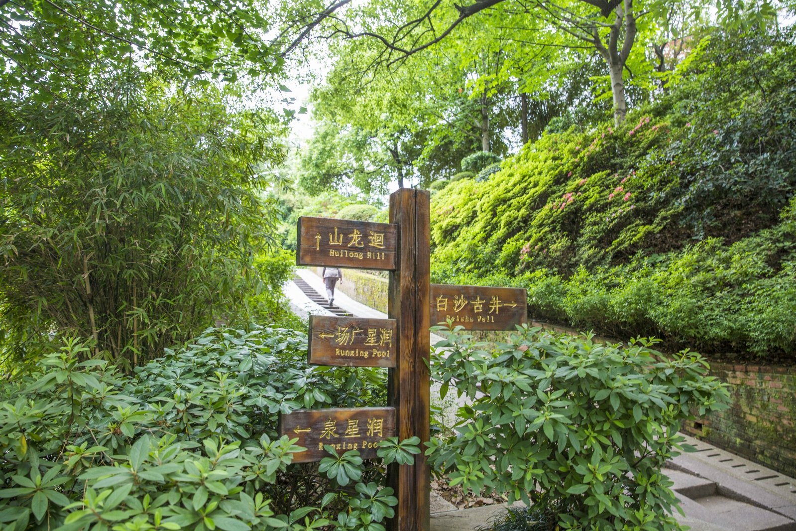 公园不是很大,右手边有一个回廊,有文人墨客歌颂白沙古井很多诗词,对面郁郁葱葱的土丘,据说叫回龙山。