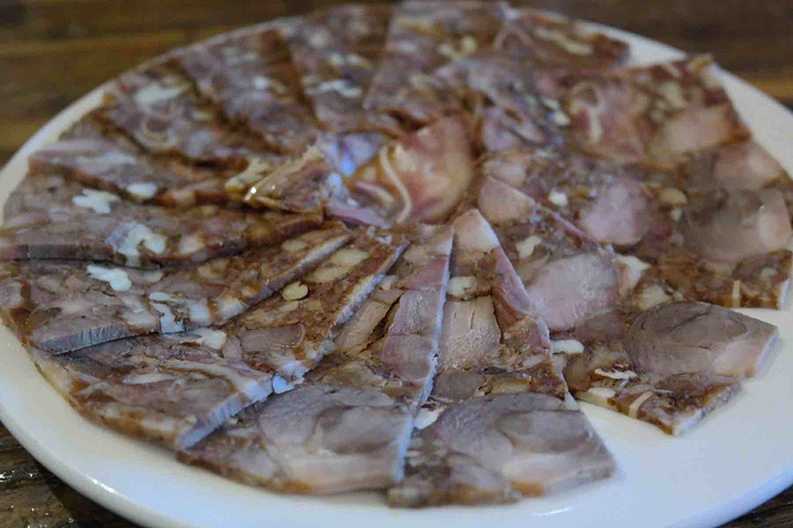 笨猪头压肉,这个是上过某美食节目的经典菜,以前都是在山西才能吃到,这个改良了一下,加了核桃等味道更香