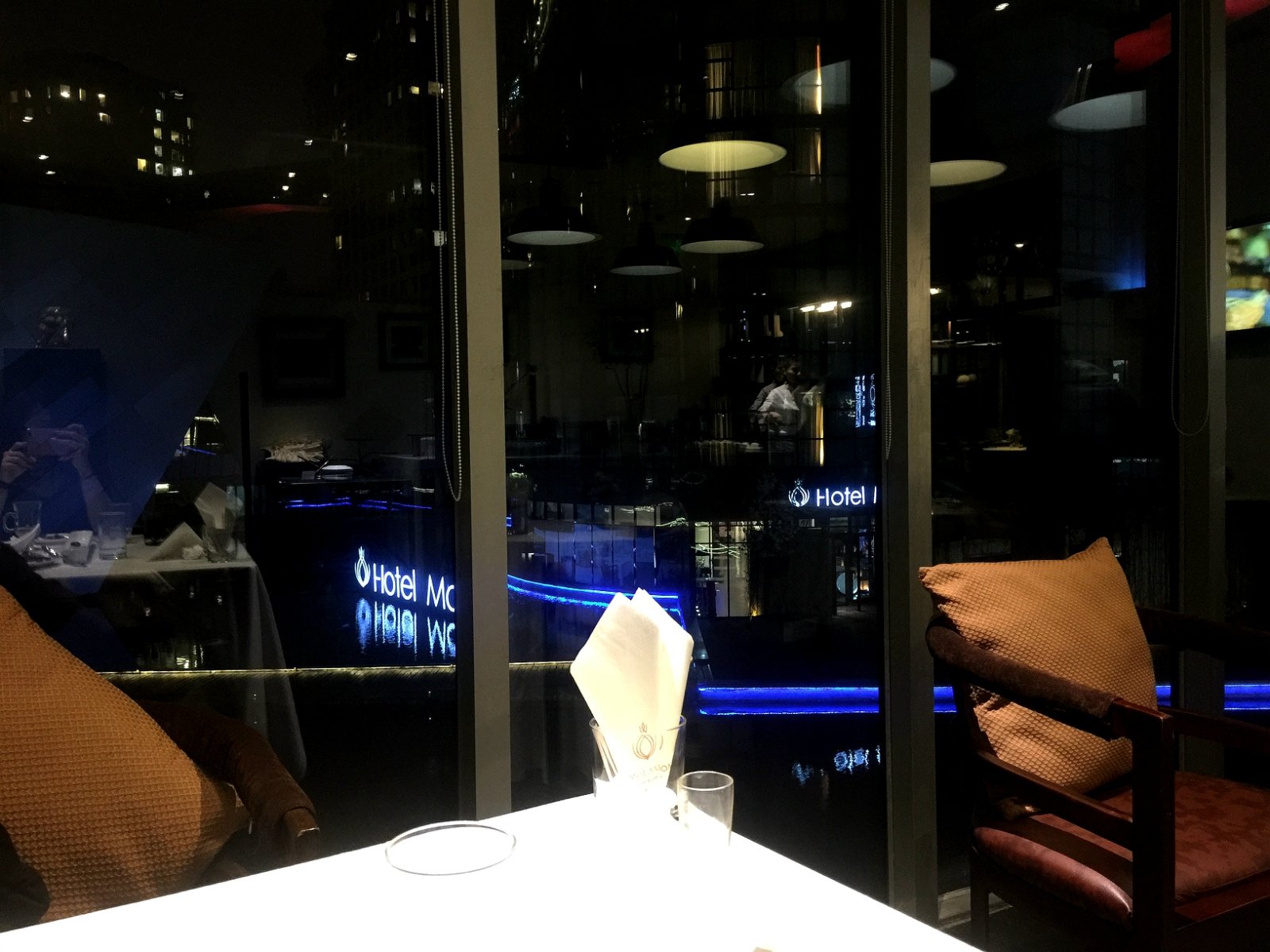 有一面落地玻璃的景观位可以看到窗外的夜景