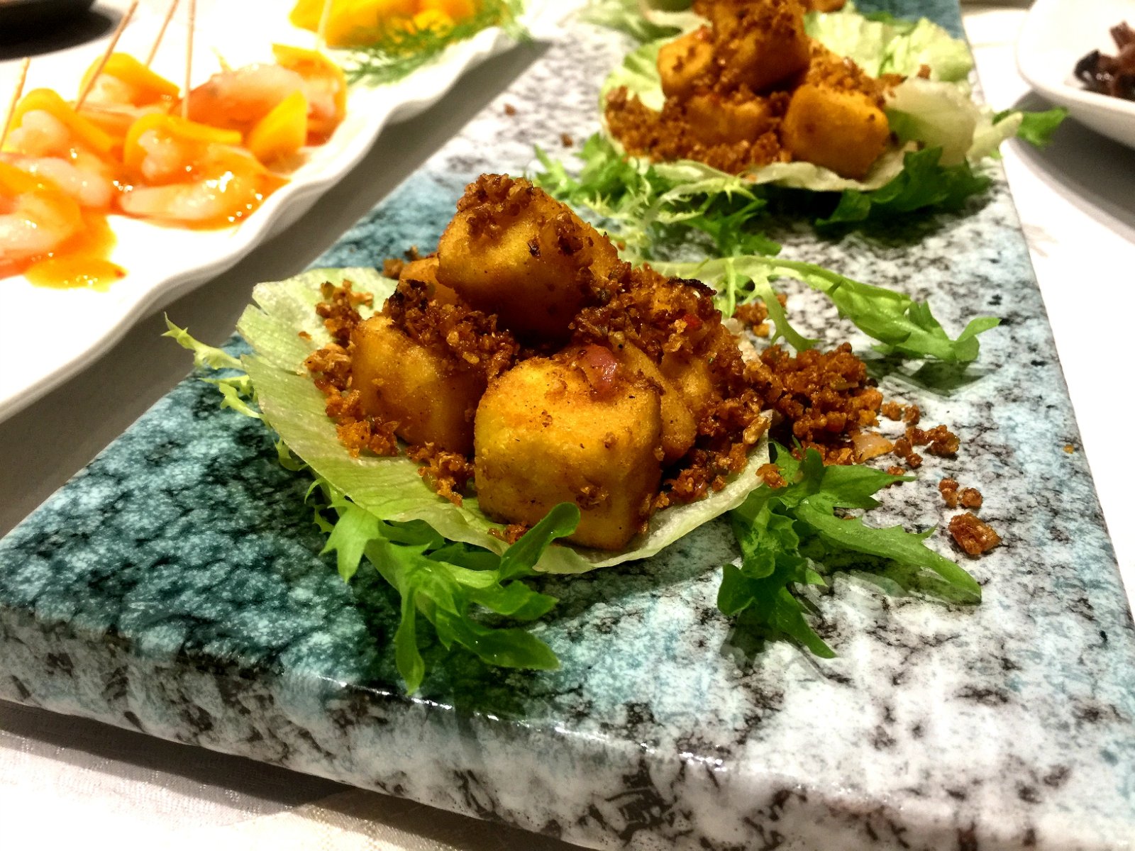 ...颜色很漂亮 用芒果包在虾的外面,有甜辣酱的味道 虾肉非常嫩,口感是滑滑的 很适合夏天吃的一道菜