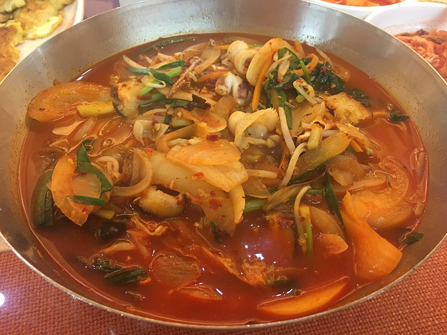 到了延吉西站后,马上就感受到了当地的民族气息,朝语报站的公交、周围朝语沟通的人们。。在站前拍了几张照片后,乘坐16路公交到延边大学站,大概13站地。 到了延边大学城后,安顿好住宿后,就开始吃吃吃啦,第一站来到了兴豆饭店(延边大学店),菜品如下: