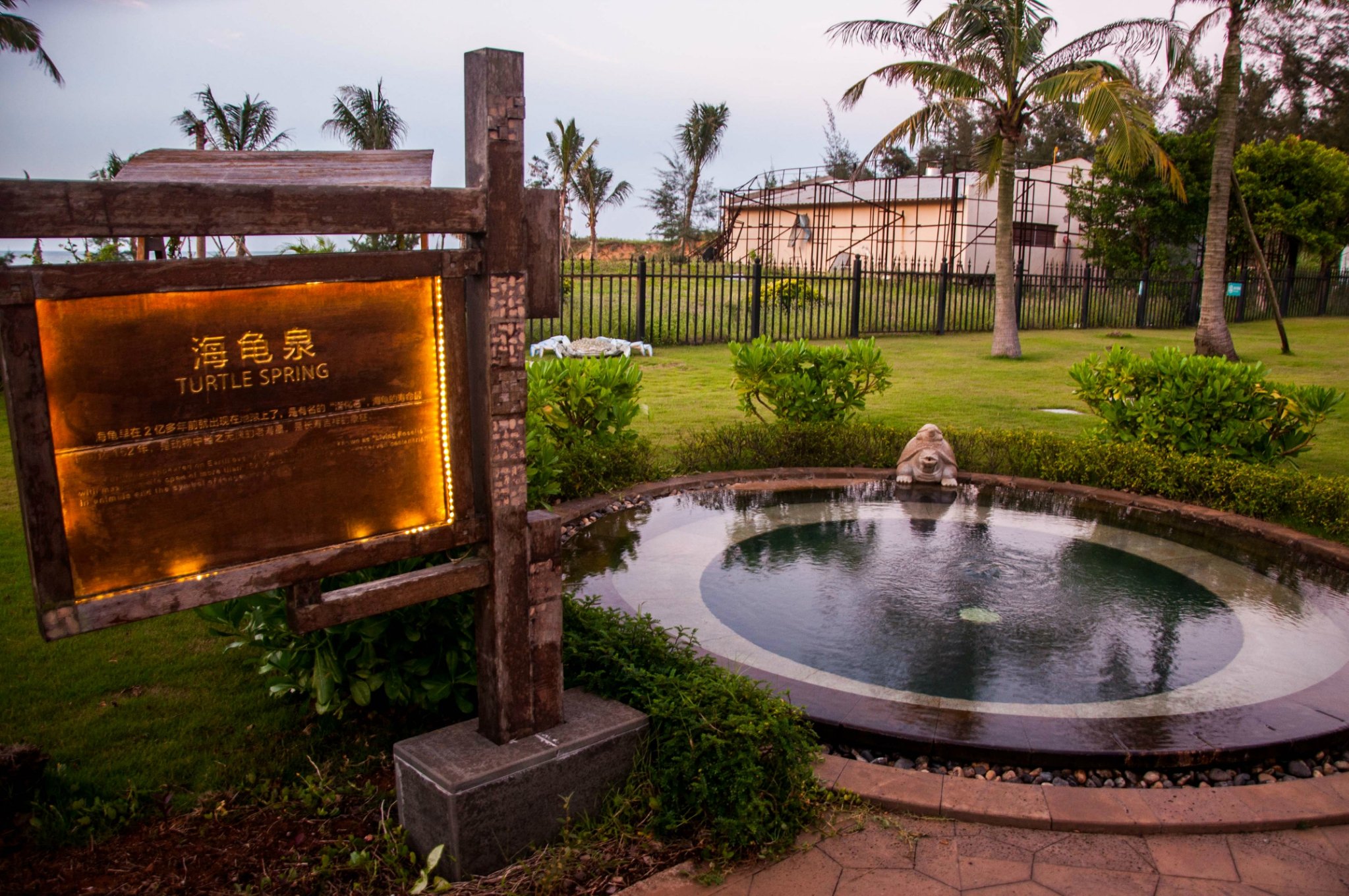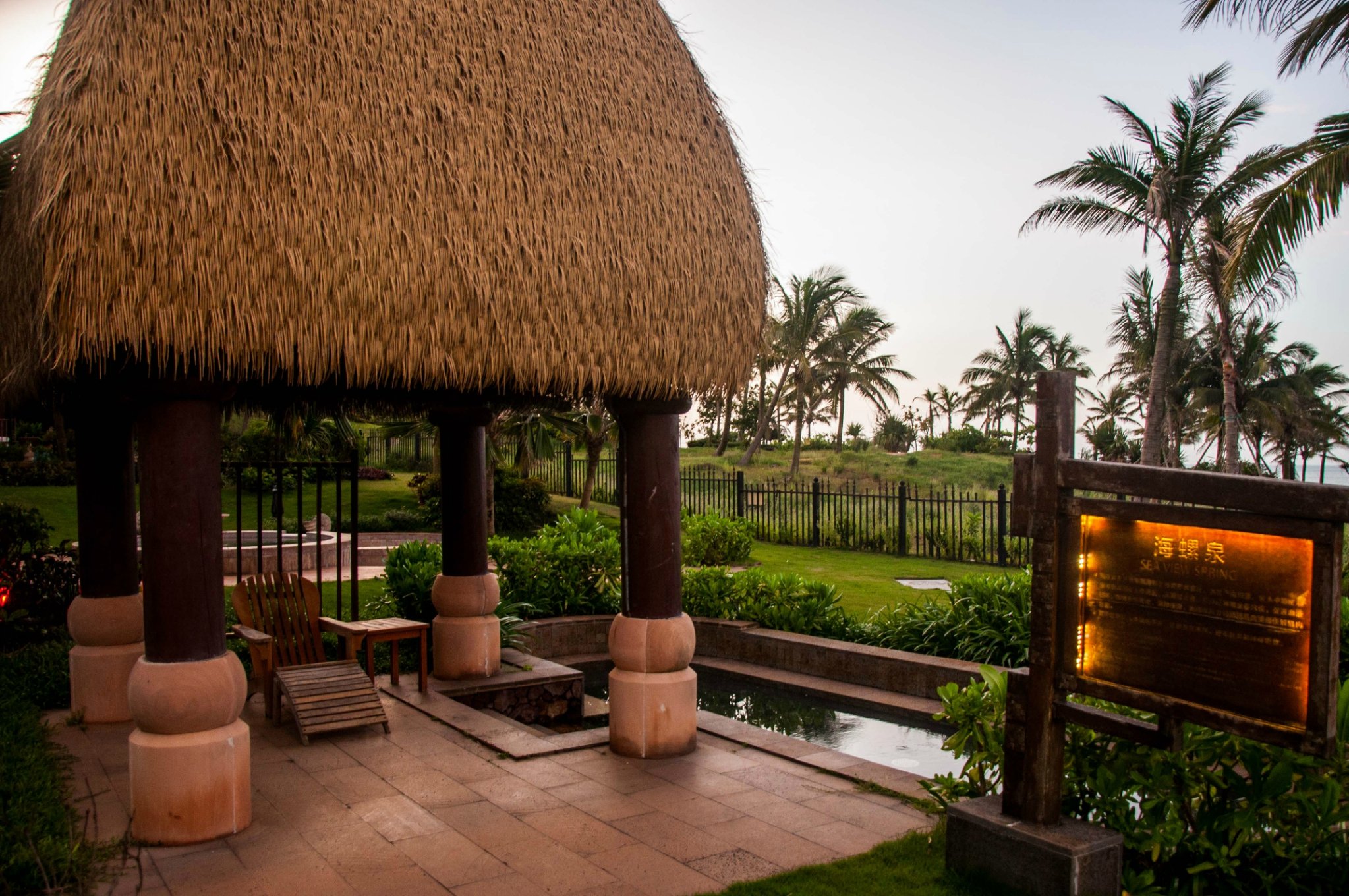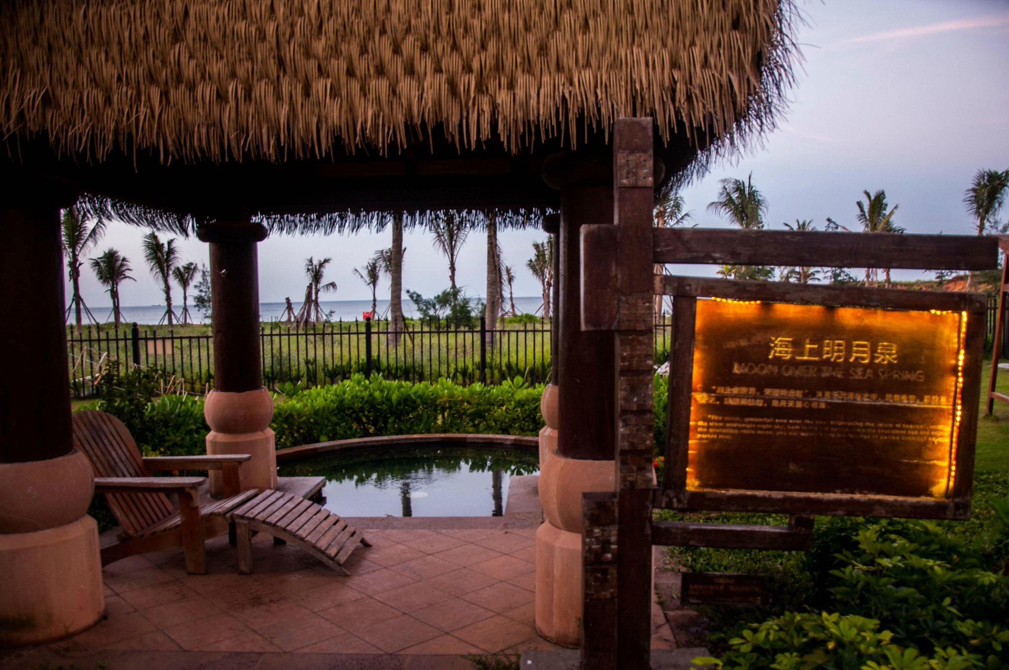 海景温泉泡池。玫瑰浴、当归泉、冷雾池、土耳其鱼池等近40个功效、风格各异的温泉泡池星罗棋布在海景温泉区域,让您一边壮阔的海天一色美景,一边沐浴热带温泉。