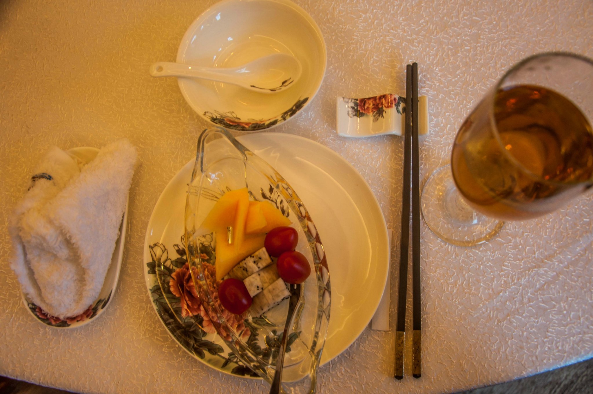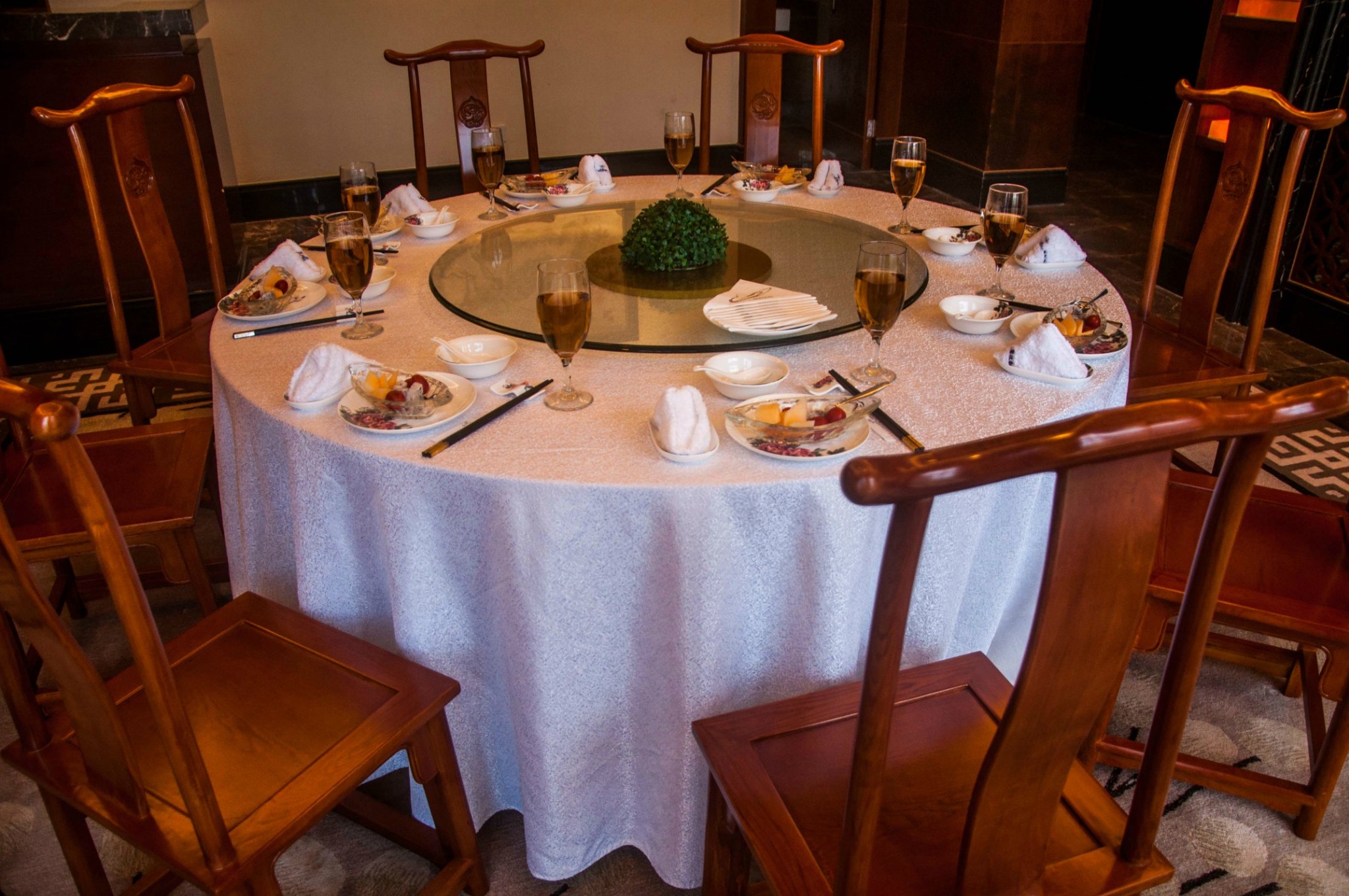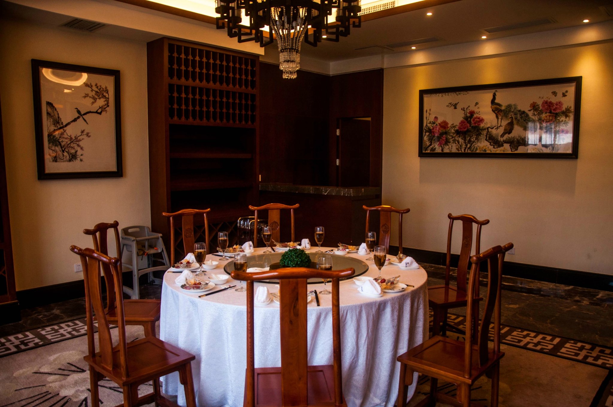 在房间歇息片刻,便在工作人员的指引下前往酒店的专属包厢用餐。