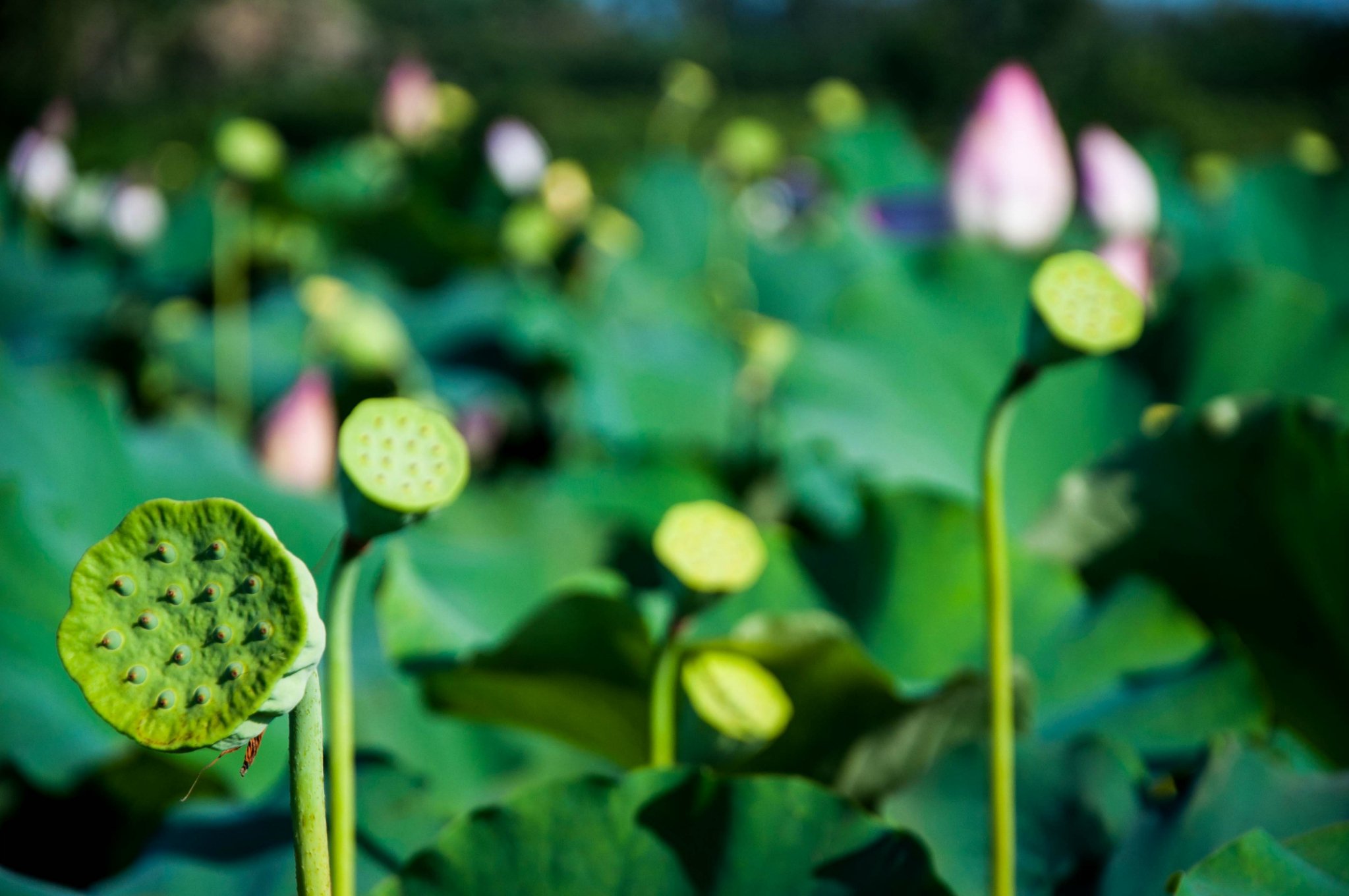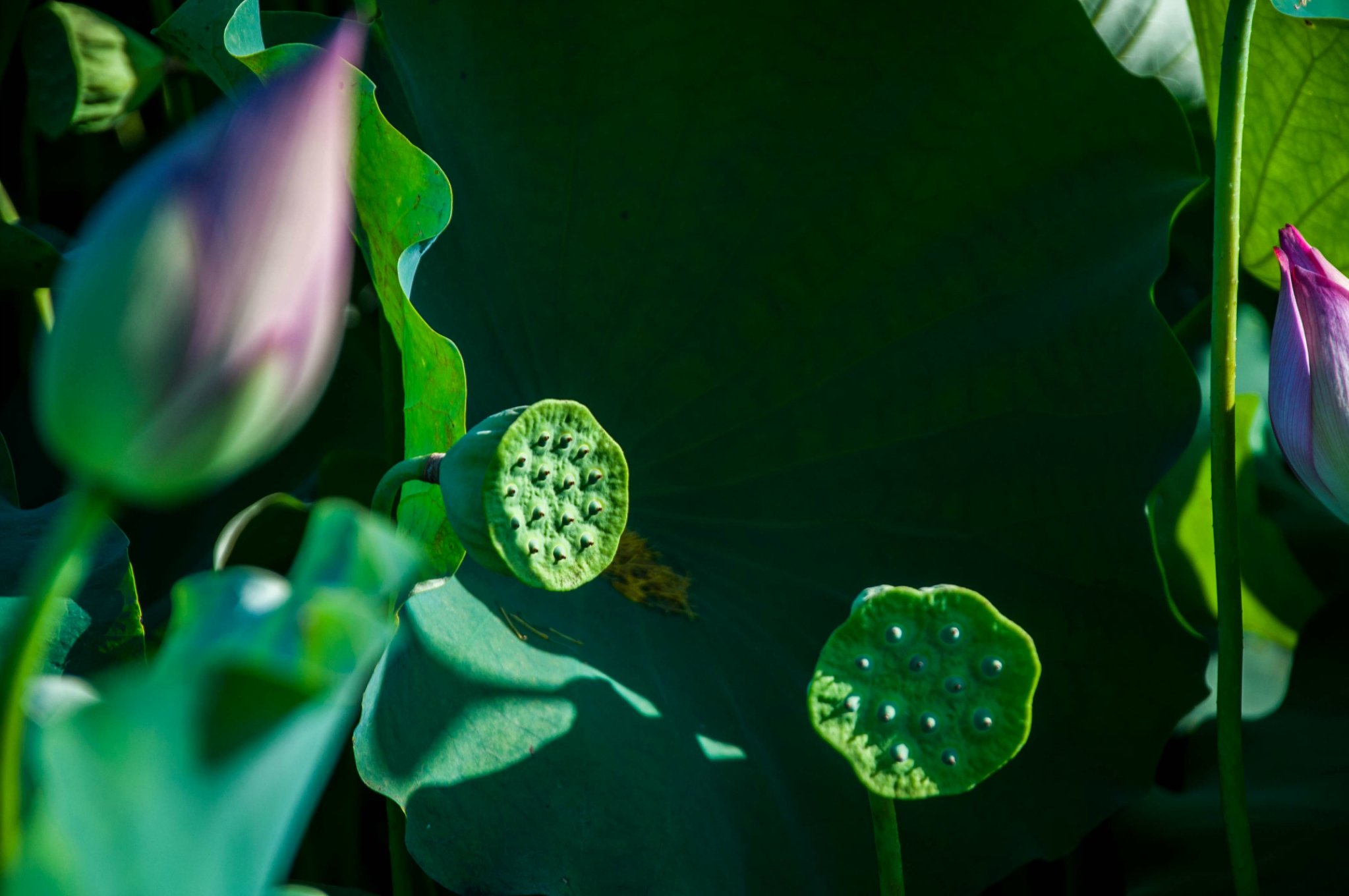 唯有荷塘,暂无月色,小荷露角,莲蓬翩翩,夕阳伴着海风洒下斑驳,果然,“接天莲叶无穷碧,映日荷花别样红。”