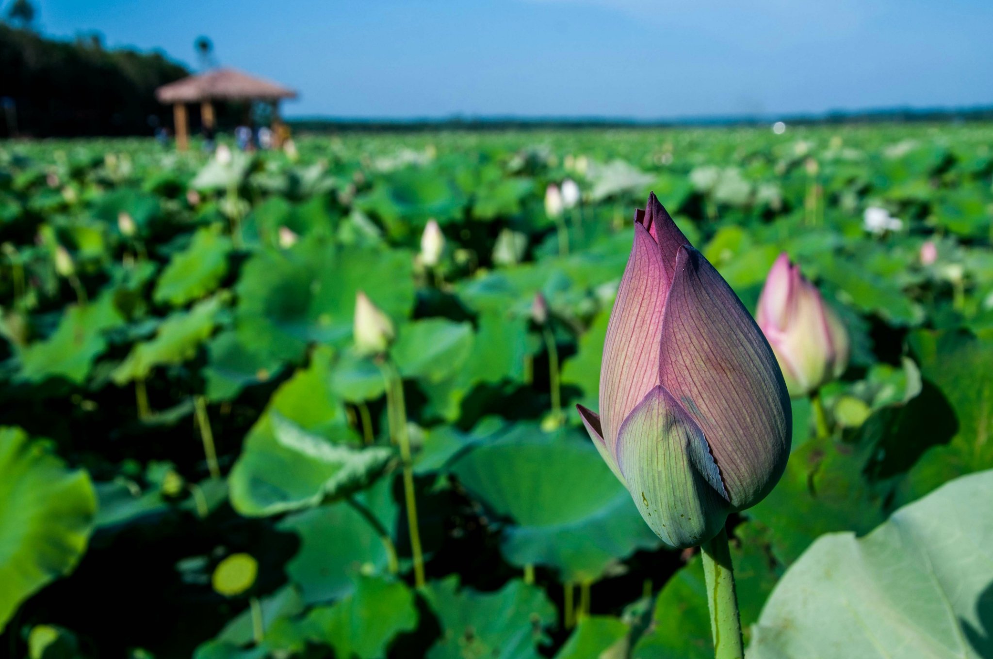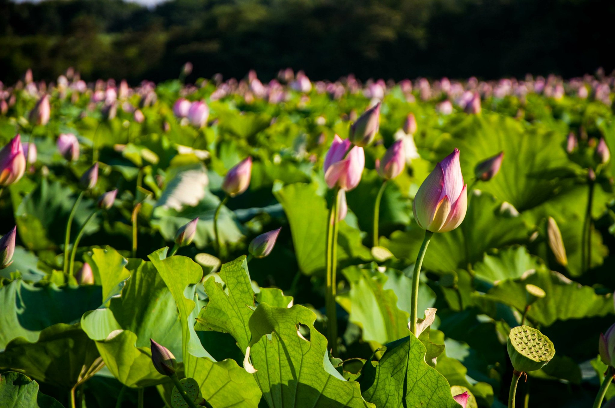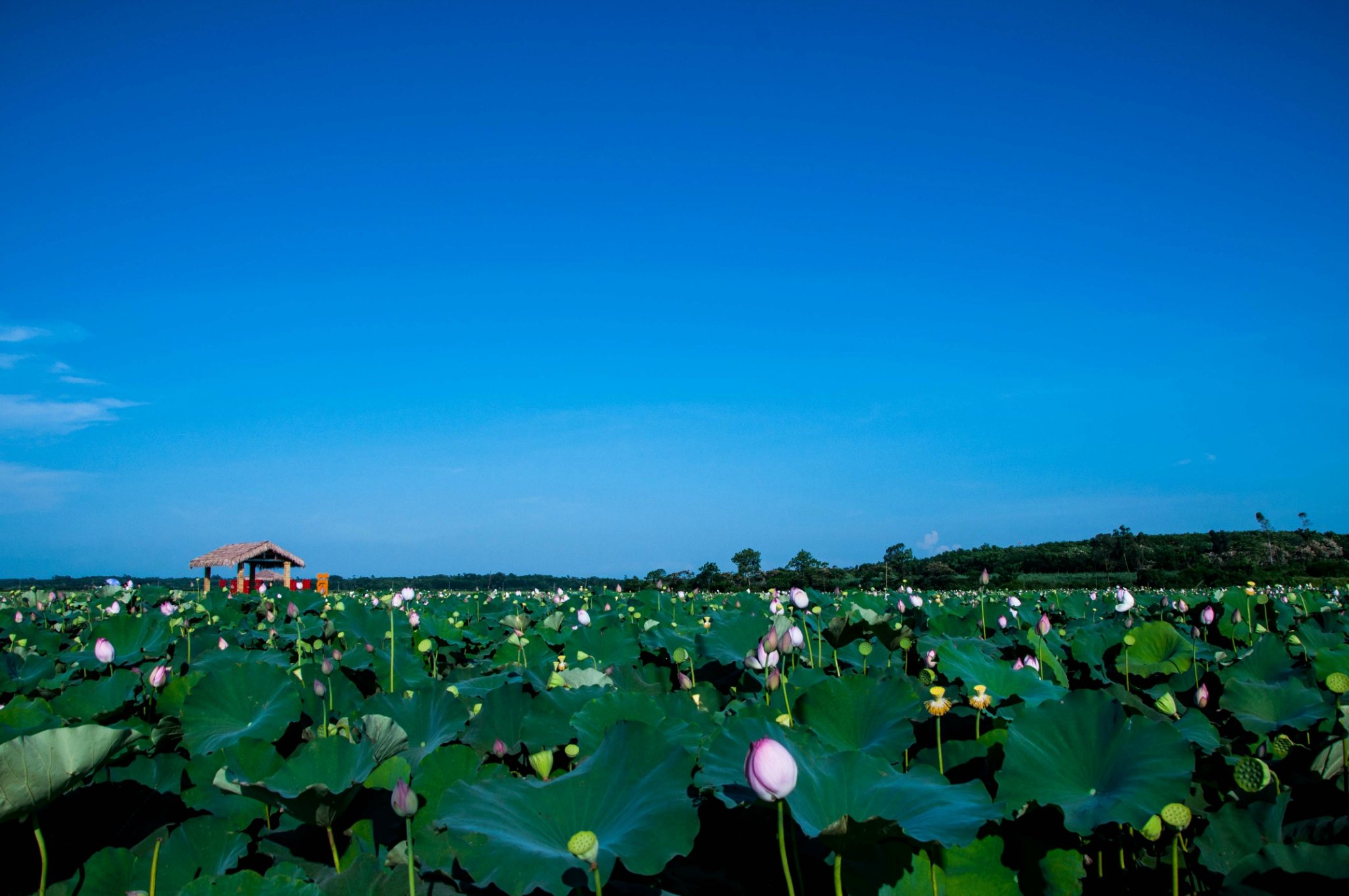 到了荷花基地听当地的工作人员说才知道,原来荷花都是早上开,午后炎热,荷花都避暑呢