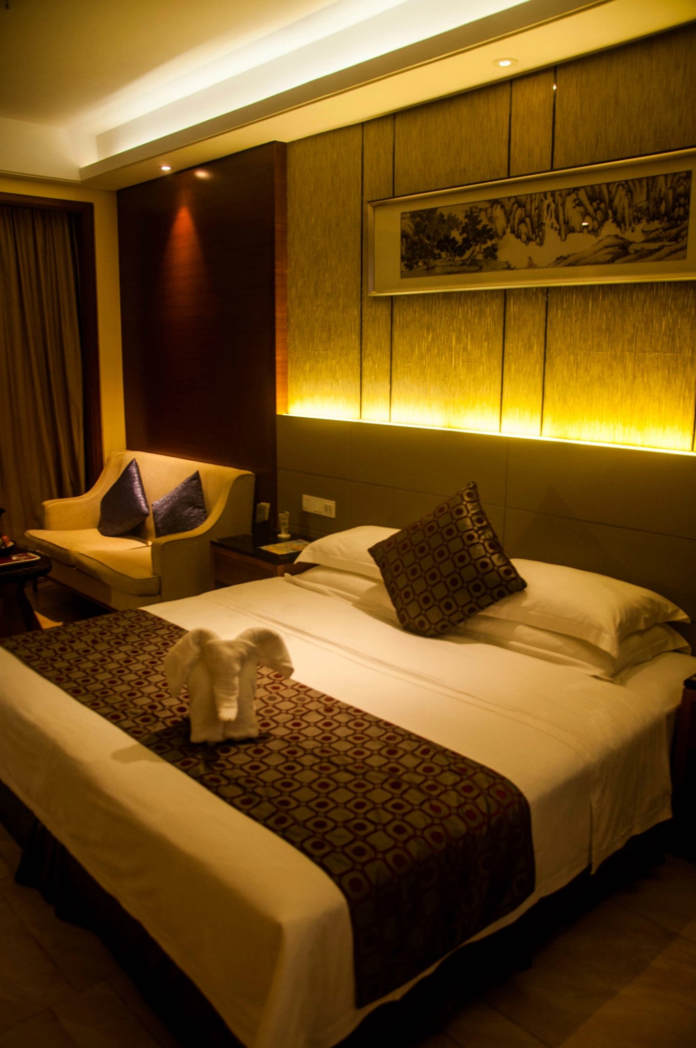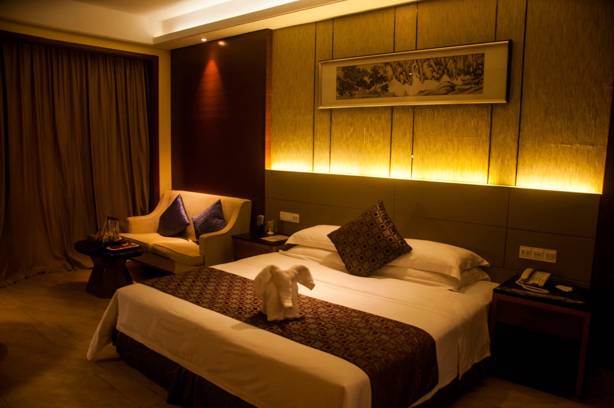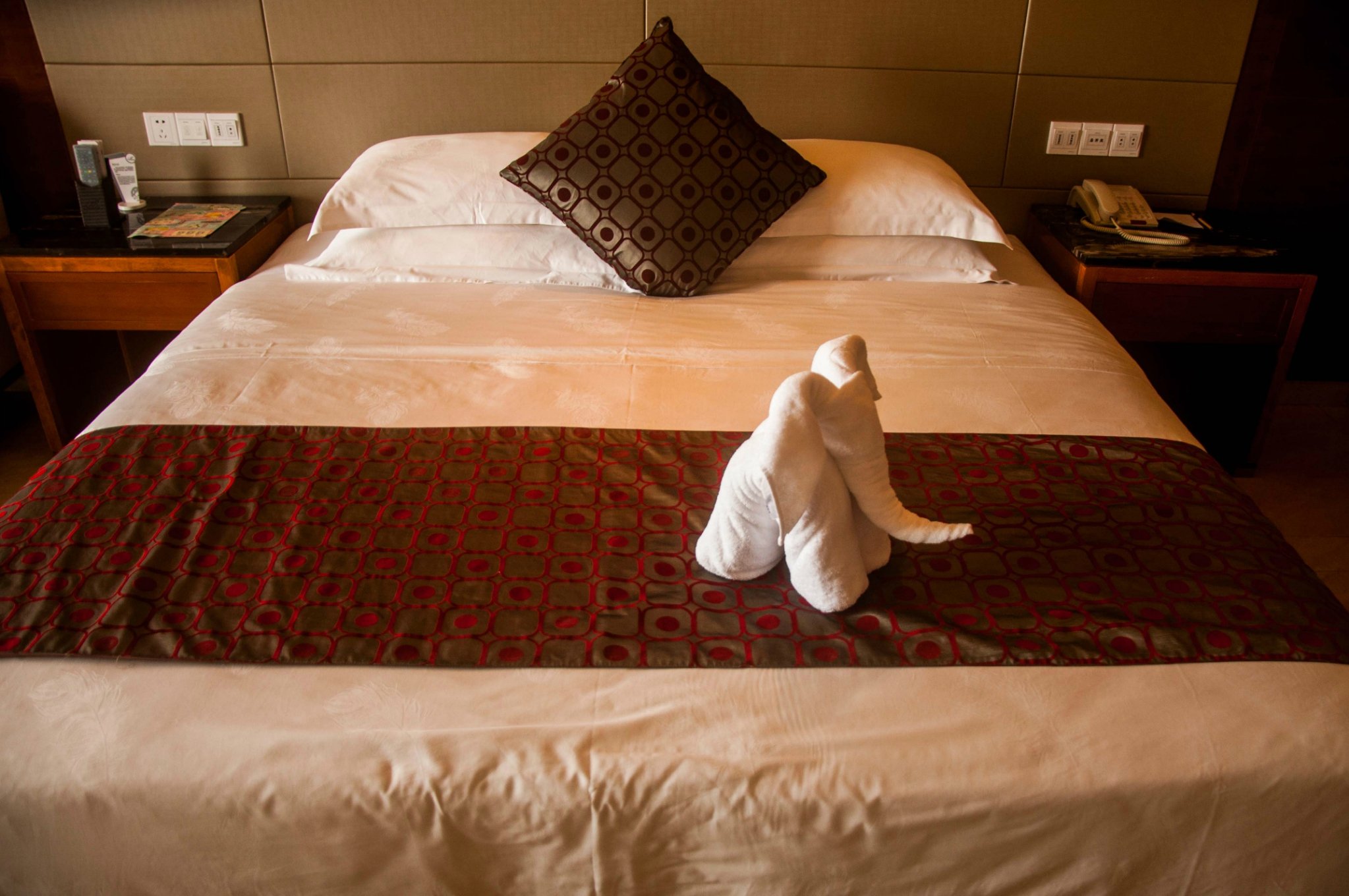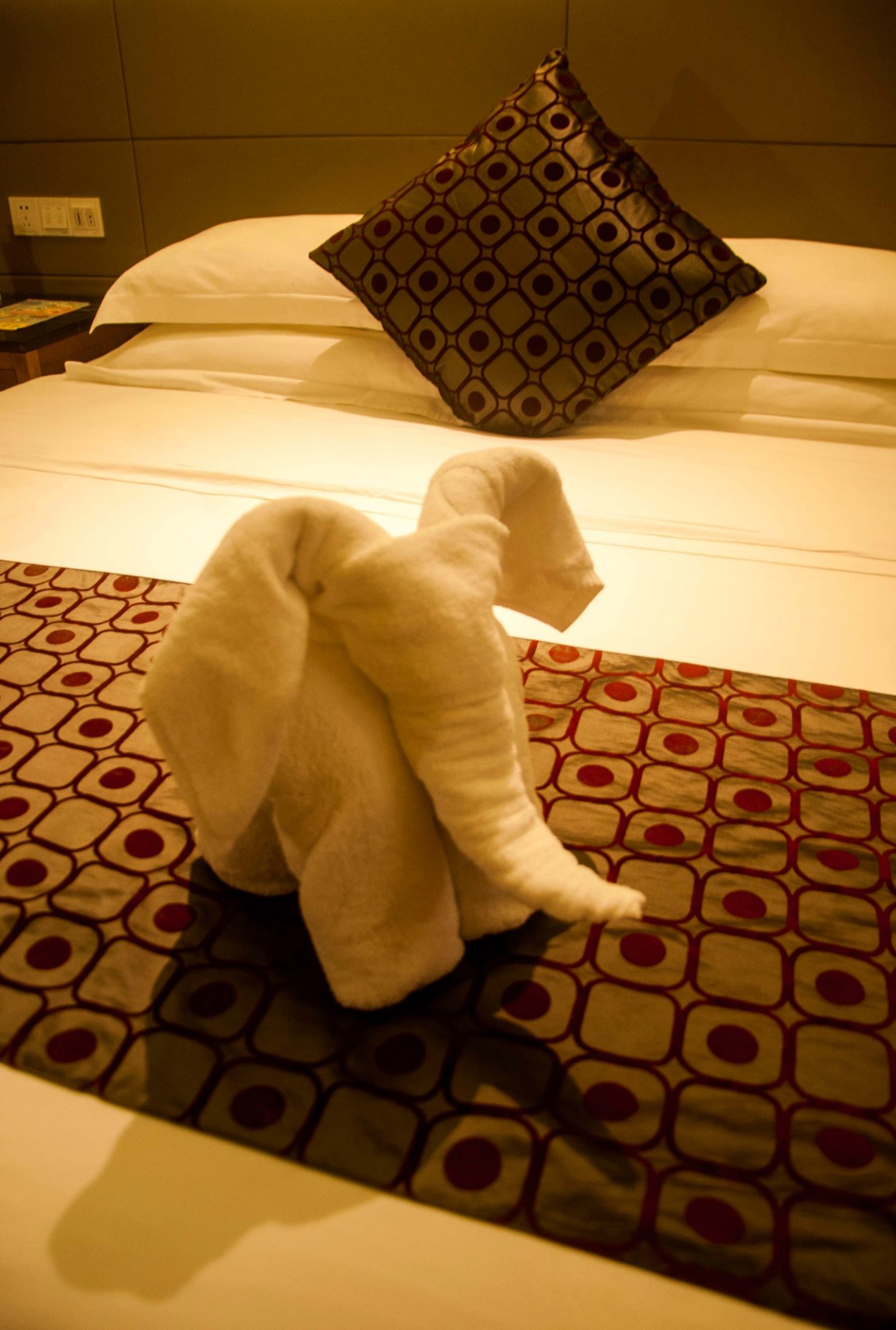毛巾叠成了可爱的小象放在床上