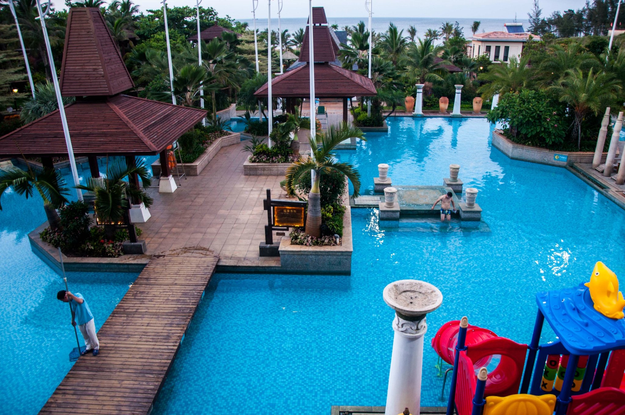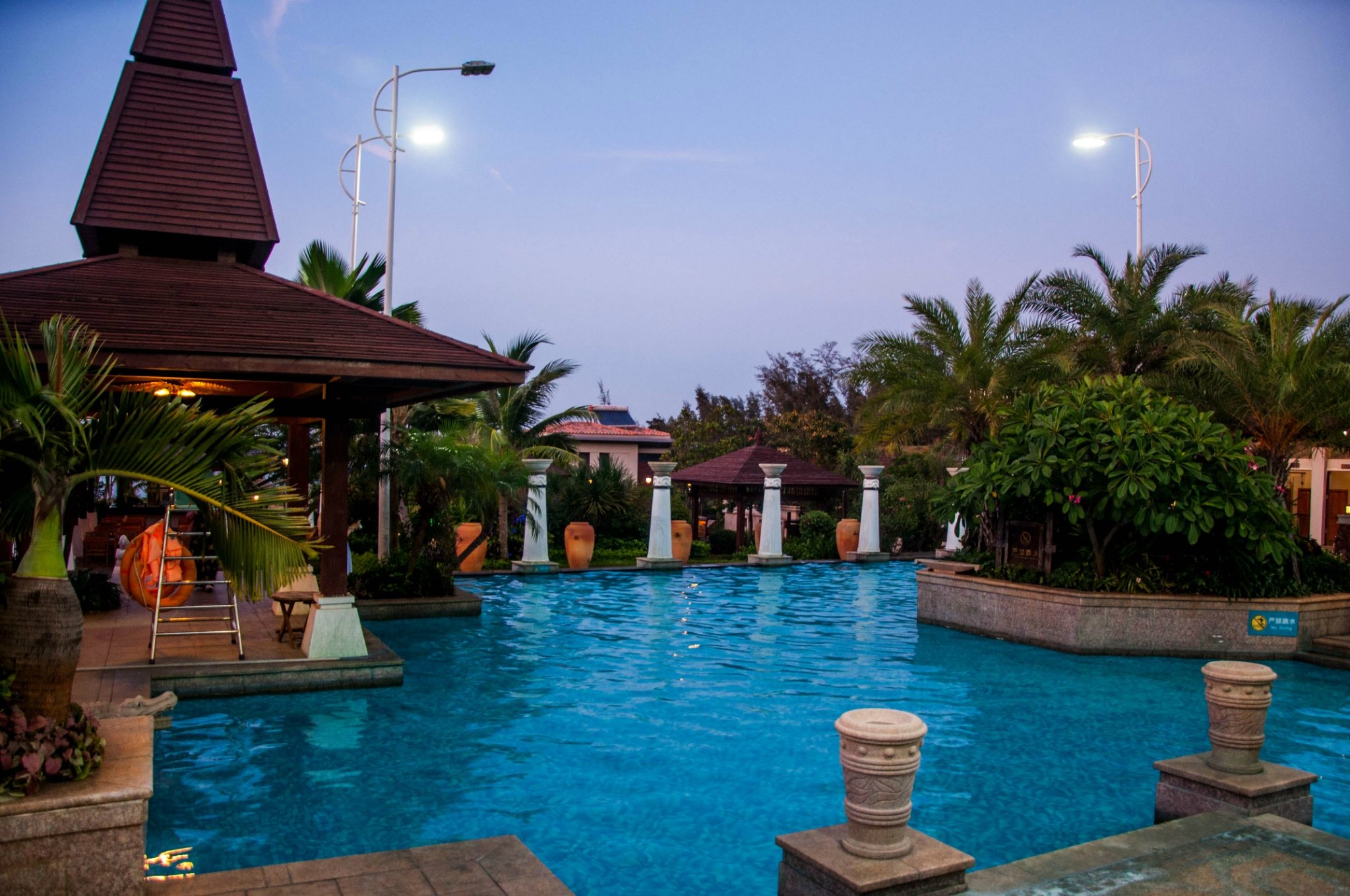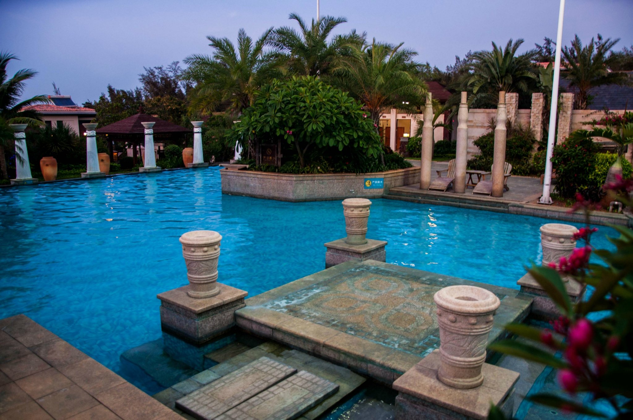泳池的风格颇具东南亚风格