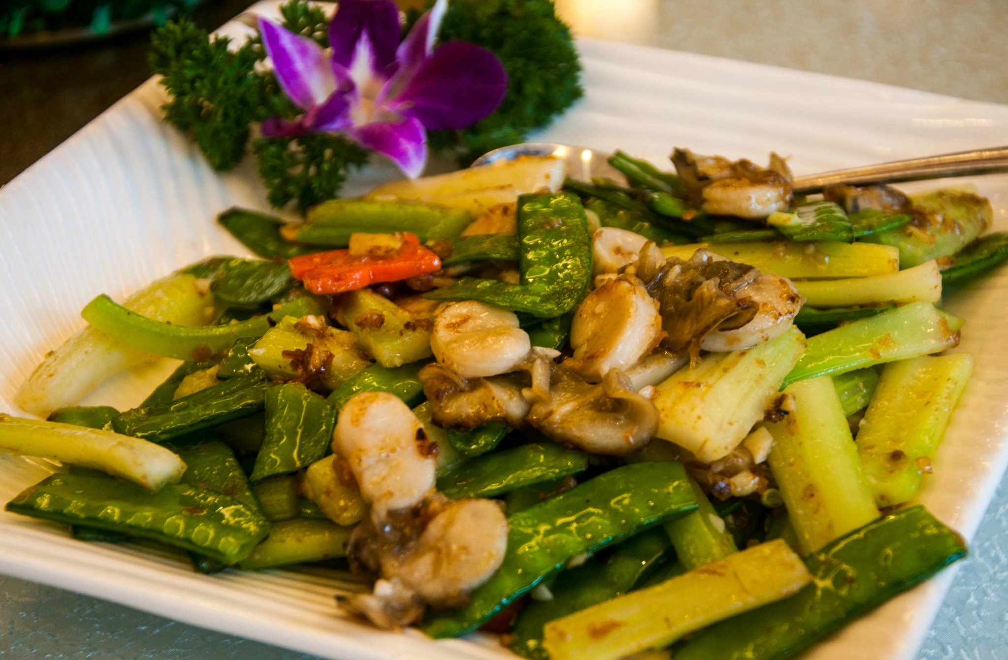 席间聊天,得知餐厅所有的海鲜均出自临高本地,清晨渔民出海打渔,打渔归来后直接在码头或市场出售,下午这些鱼就成了餐桌上的美味佳肴,自产自销,味道绝对地道。