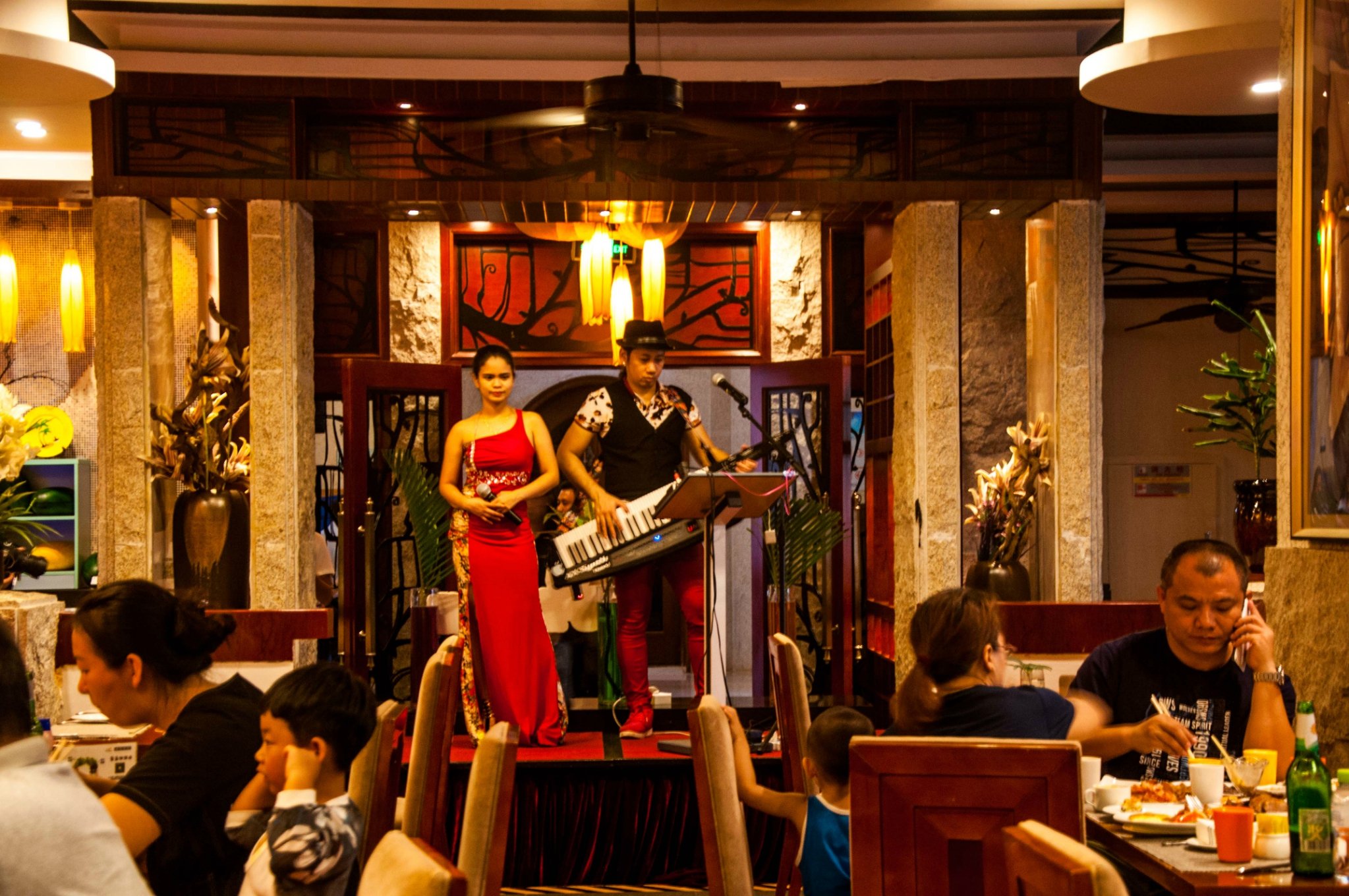 餐厅虽然不大,但是用餐环境一流,每天傍晚的用餐时间有菲律宾歌手献唱助兴