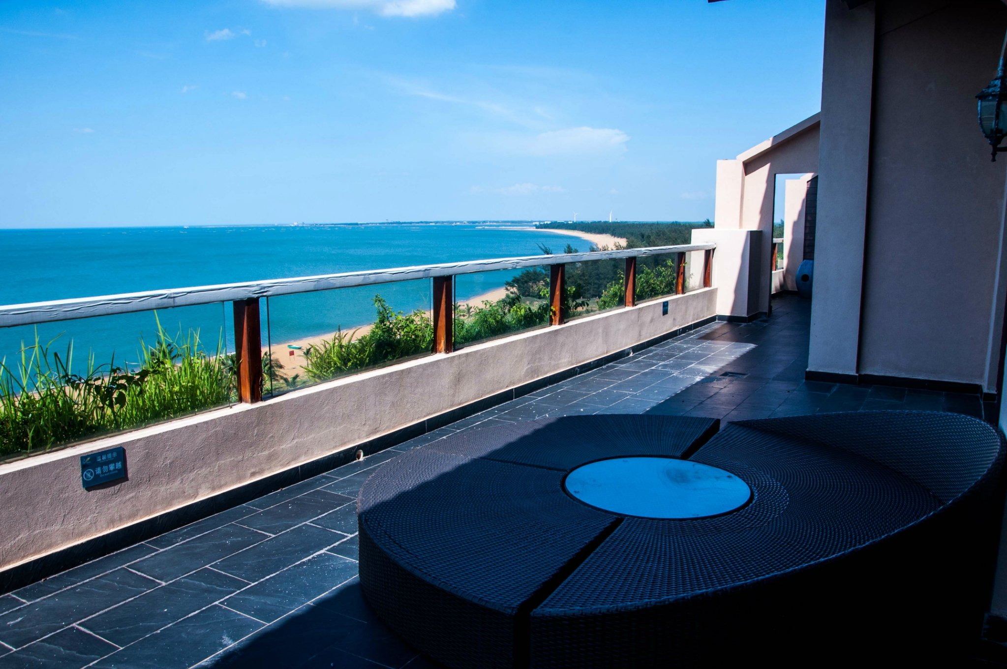 拉开阳台的窗帘,映入眼帘的是一望无际的蔚蓝海景,心情忽然大好。