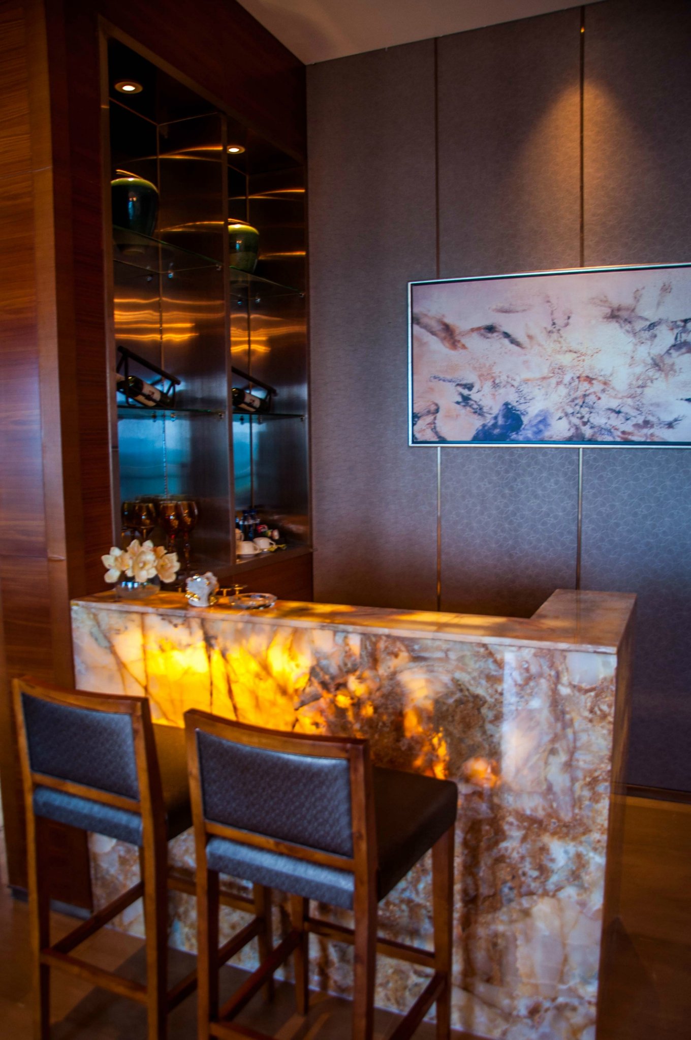 酒店的专属包厢氛围休息区和用餐区,室内的装修精致典雅,莫名让人心情愉悦。