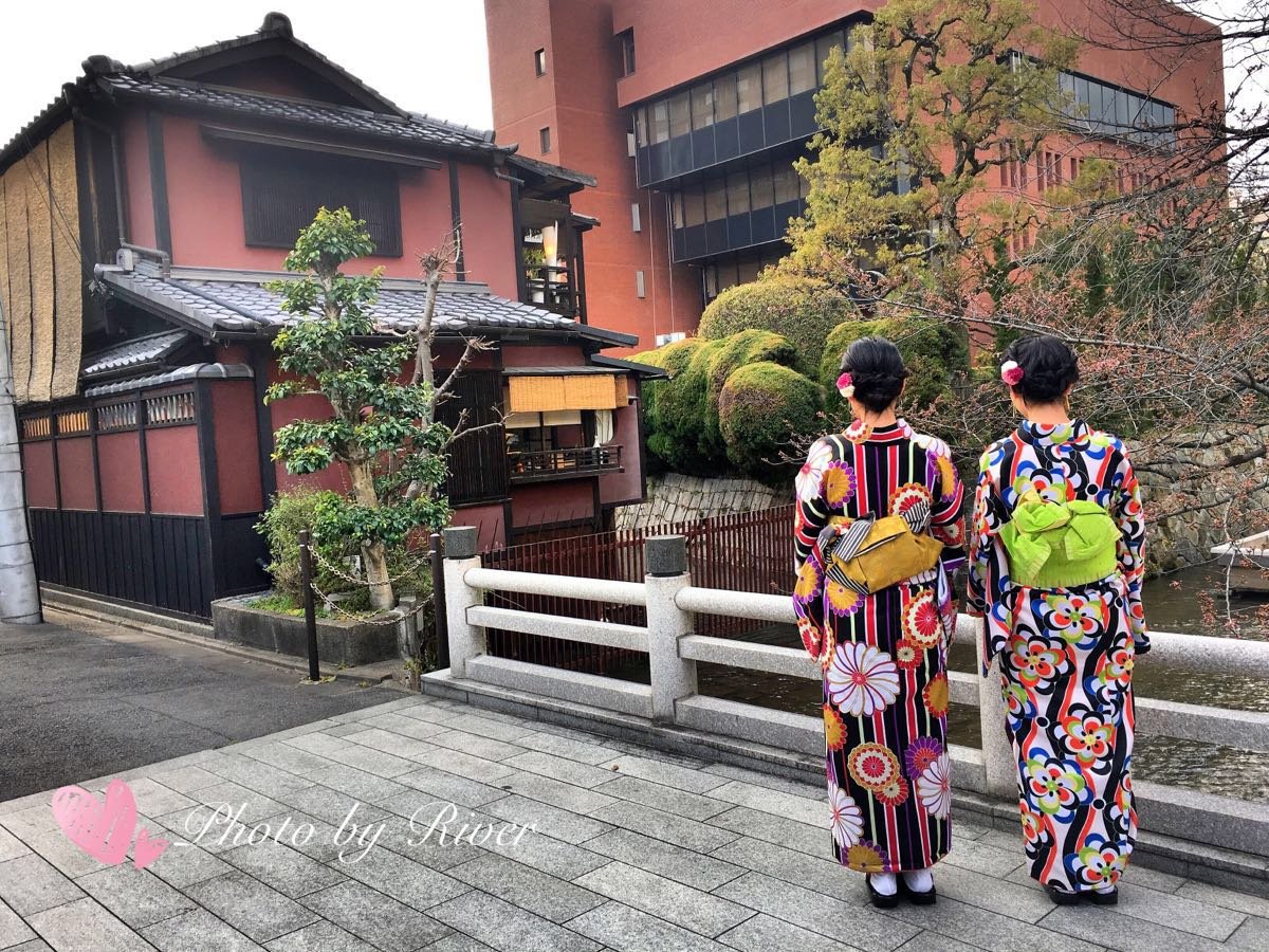 木屋町 木屋町通其实就是和鸭川平行的一条小马路,从二条一直到四条。两个穿和服拍照的MM