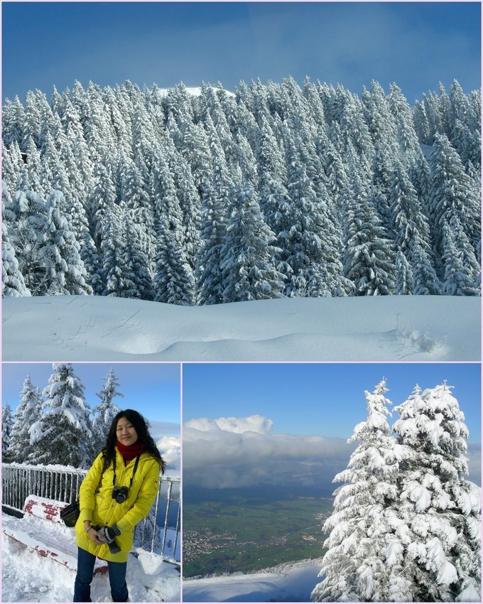 继续赶路,路上几乎就我们几个人呼哧呼哧的在雪地里走,这时后面走上来一个一位瑞士大帅哥,看我们要上山顶,于是说“一起吧”。