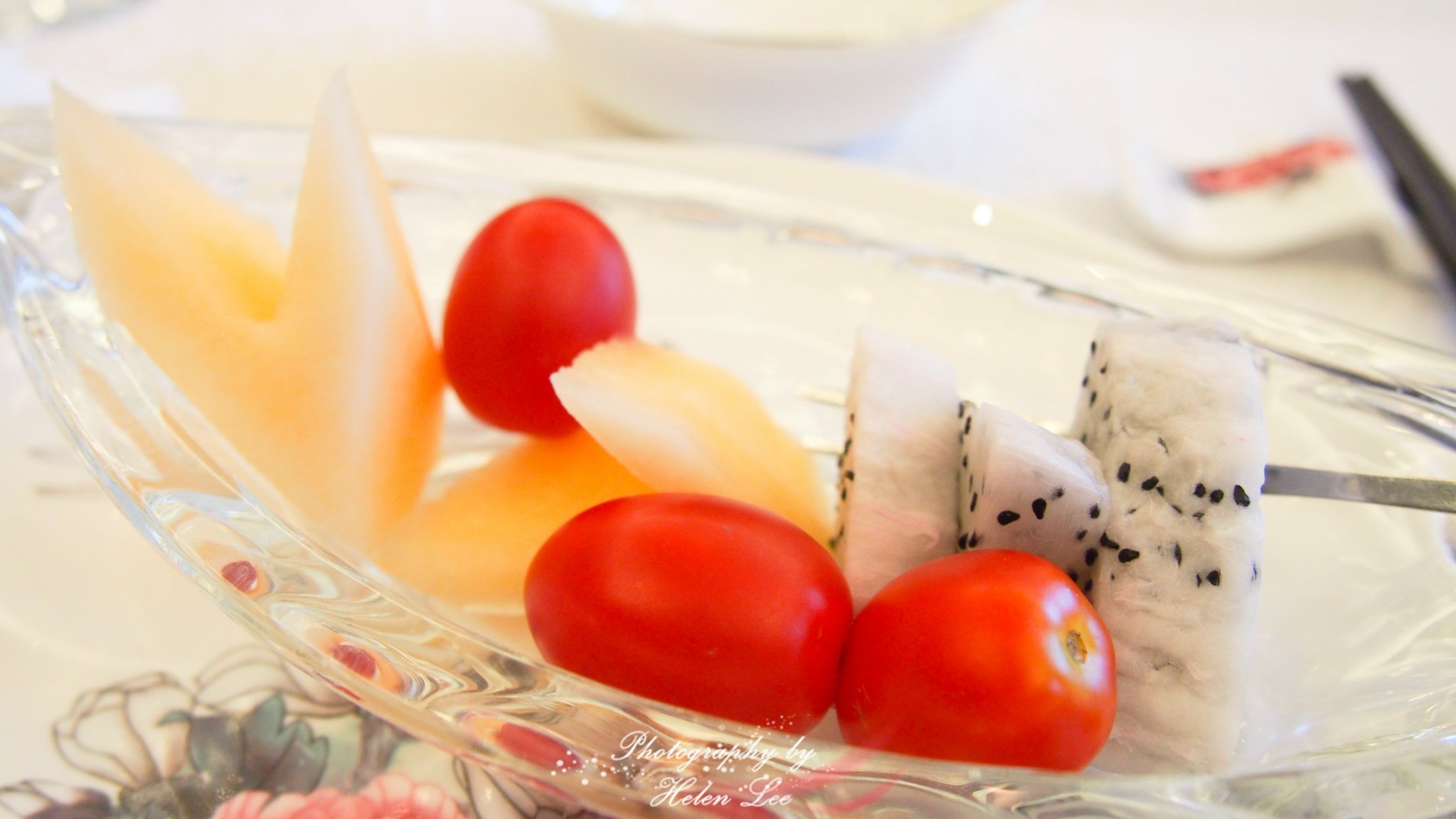 一道精美的水果拼盘后,就是各式新鲜美味的佳肴。