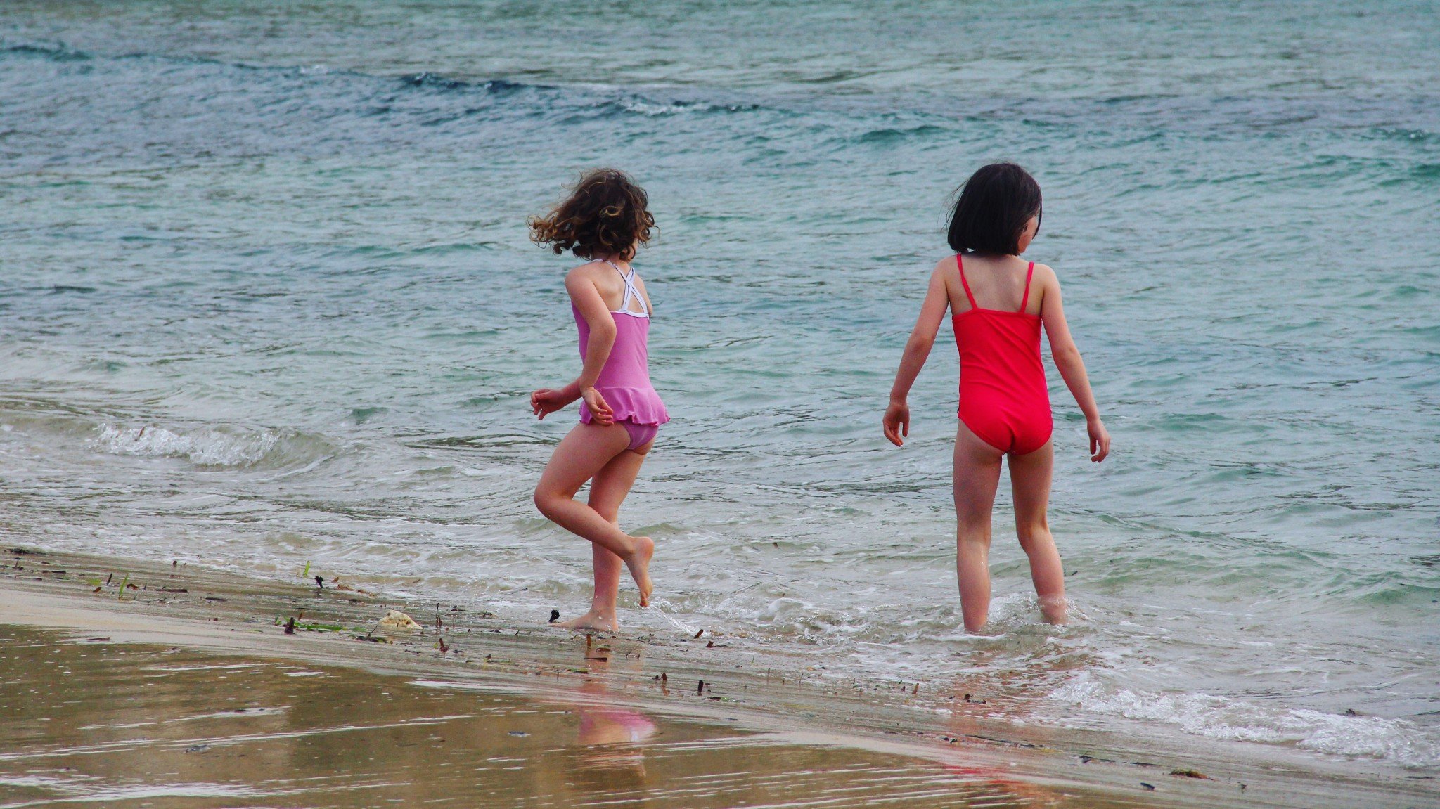 沙滩是孩子们的天堂,他们很专注地在自己的小天地里玩耍;年轻姑娘们则聚在一起有说有笑地晒日光浴。