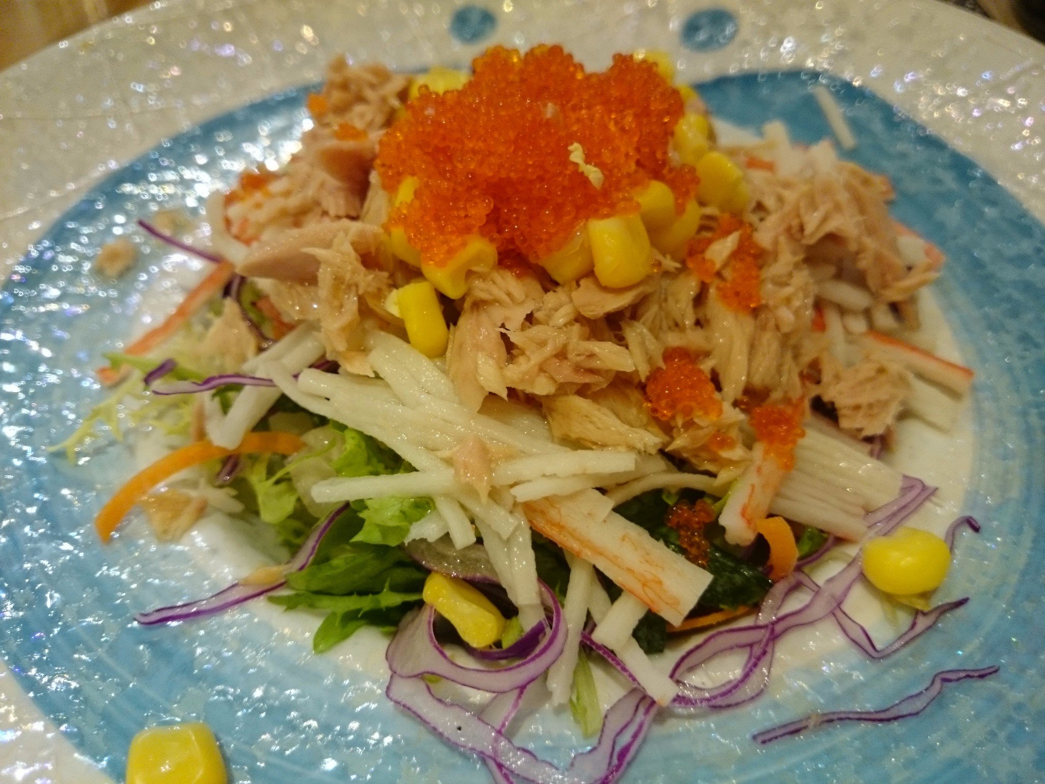 因为武汉小吃倾向面食居多,我这样的肠胃消化功能,一天吃一顿,下午来点甜点,晚上基本吃点小西红柿喝壶茶就能洗洗睡了。这天逛到楚河汉街,天气不好,下车就开始下小雨,就想找家店歇歇脚,看到了大众点评推荐的这家日料店,想着不吃主食,蔬菜沙拉来点也并无不可。于是零零碎碎点下来,一顿正餐就有了。