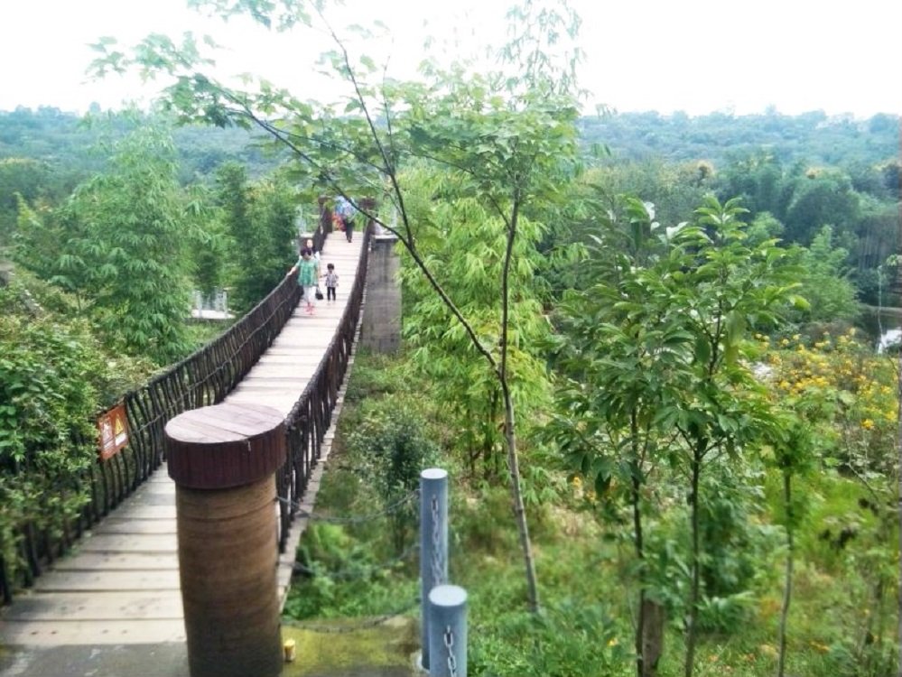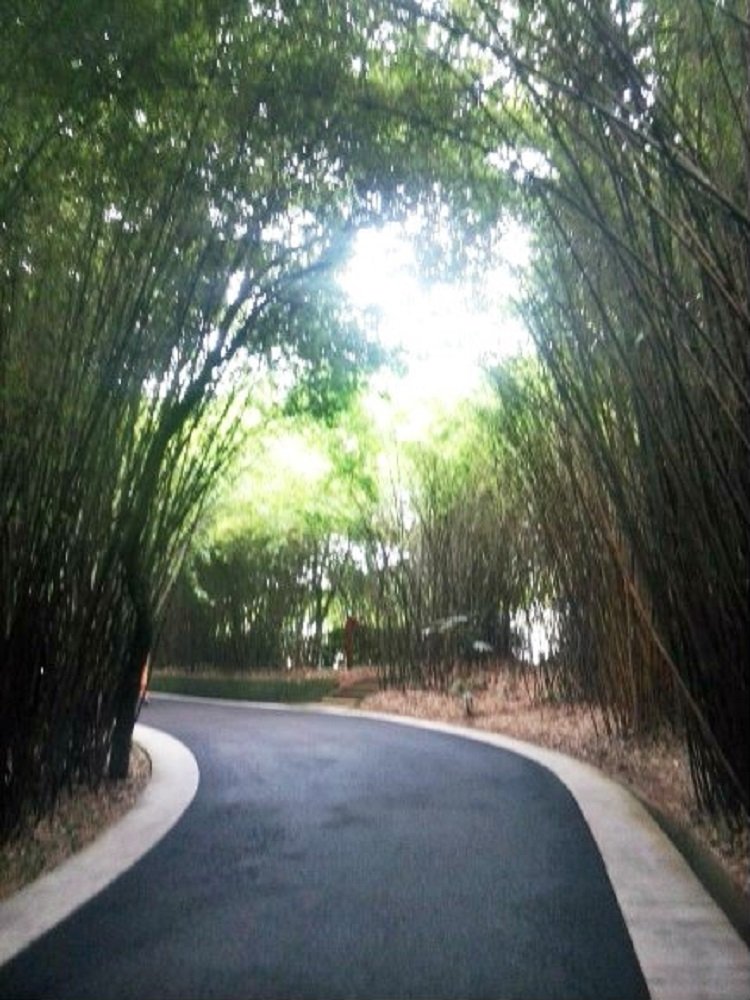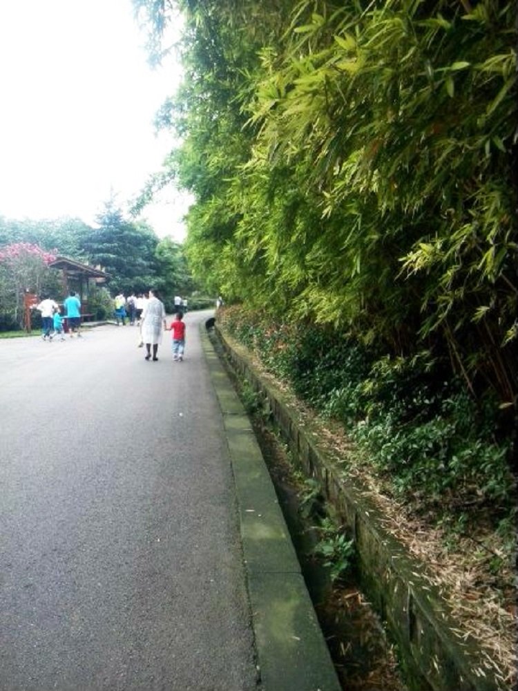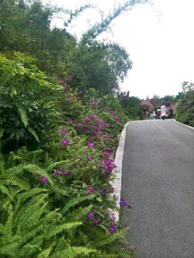 景区内林木茂盛,尤以竹子为盛,一片翠绿,养眼又凉爽。时不时就有孔雀从密林中冒出来,大摇大摆地踱着方步,在游客面前穿过马路,进入对面的竹林中。还有锦鸡等小型动物,都不怕人,到处随便溜达,走在景区里跟在野生动物园一样。