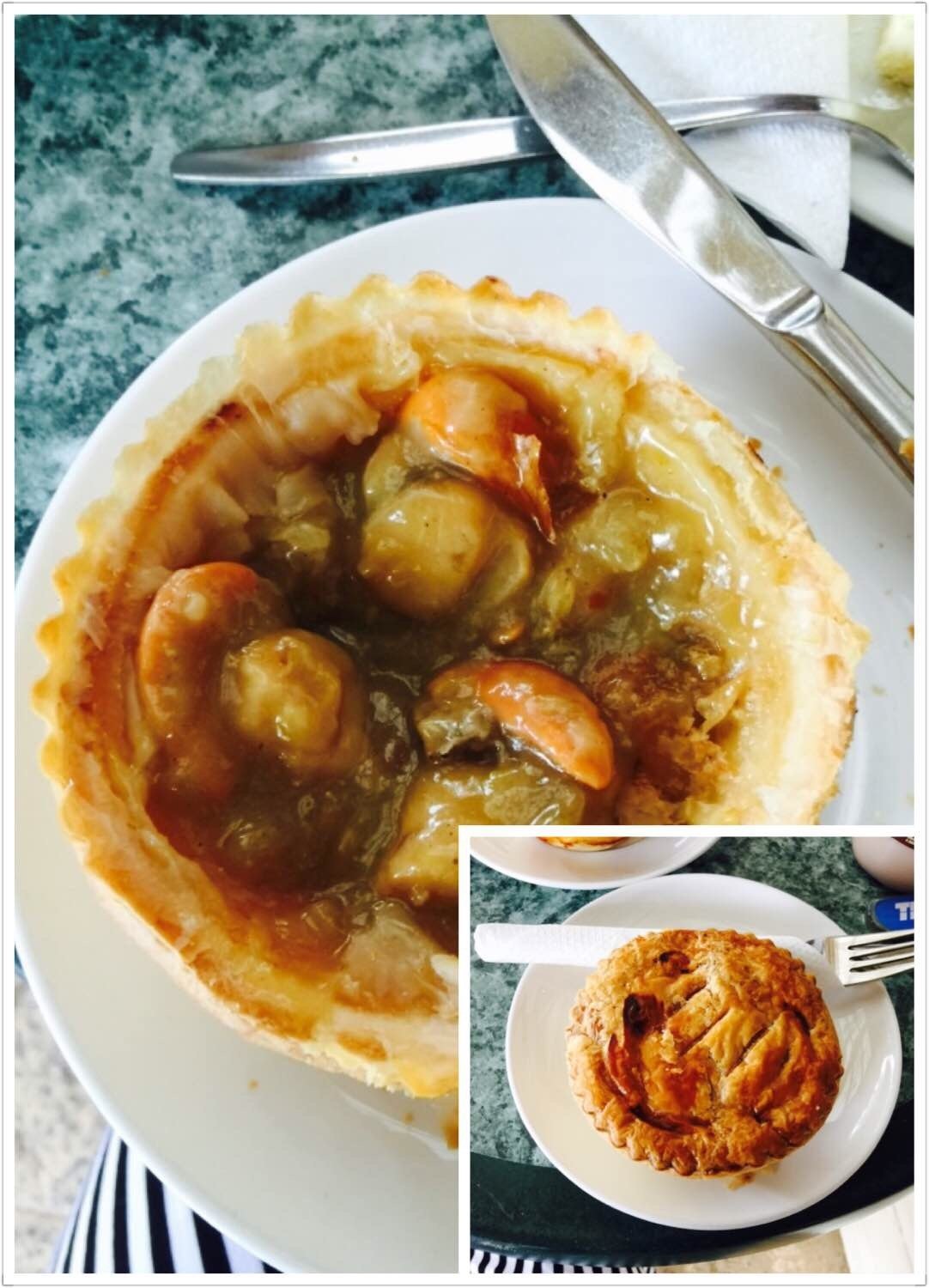 扇贝派很不错! 一进入小镇,立刻就在道路的左边发现了这家面包店。里面的扇贝各个带黄