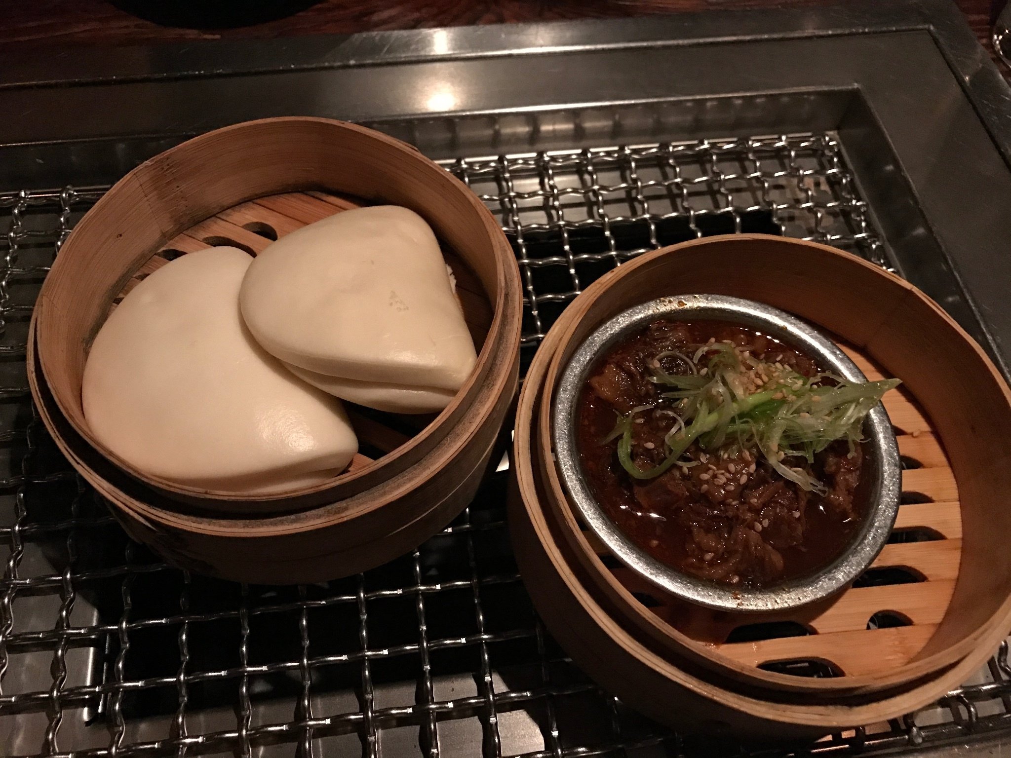 紫苏海胆是必点,虽然不是用来烤制的食物,但这道菜作为招牌还是吸引了无数人前来品尝。他们家的buns是自助型的,面和肉分开放,按照个人口味进行搭配。