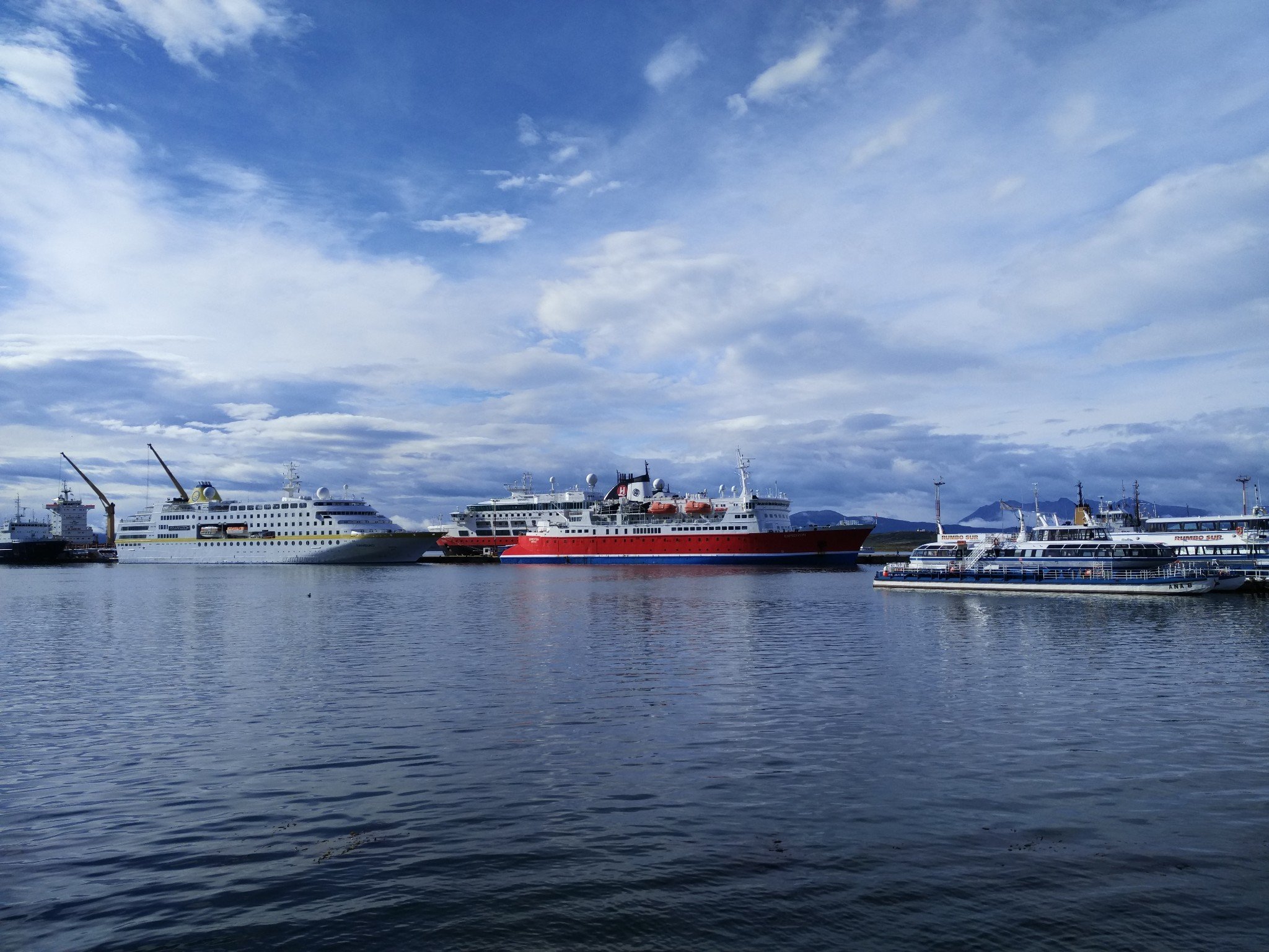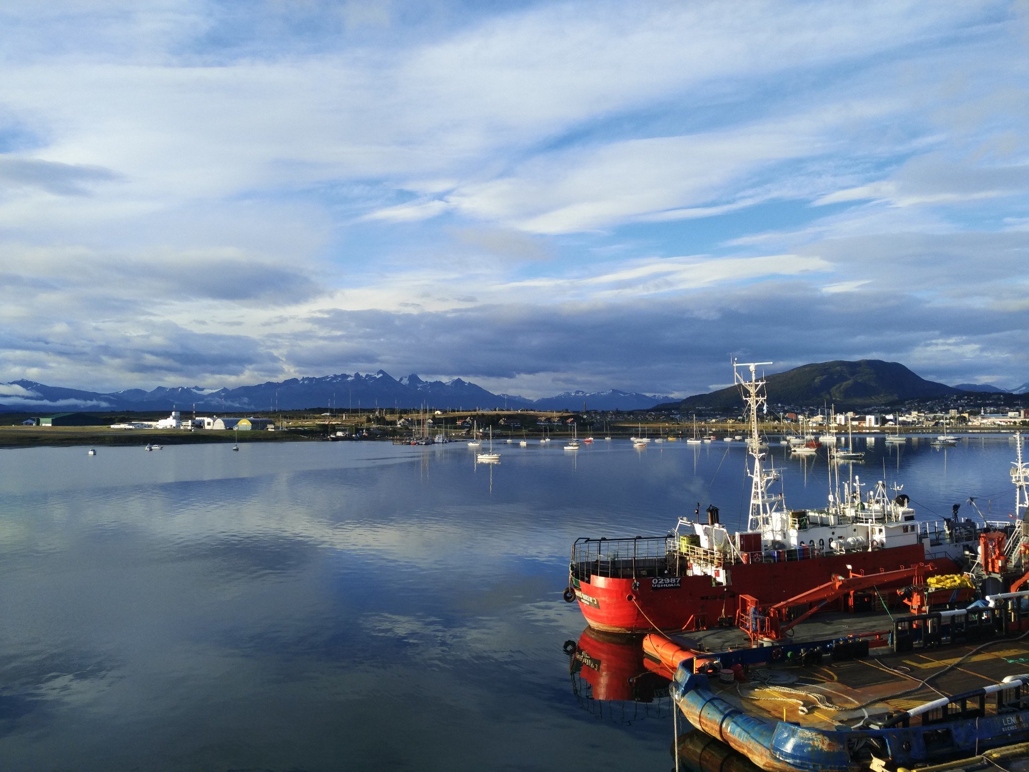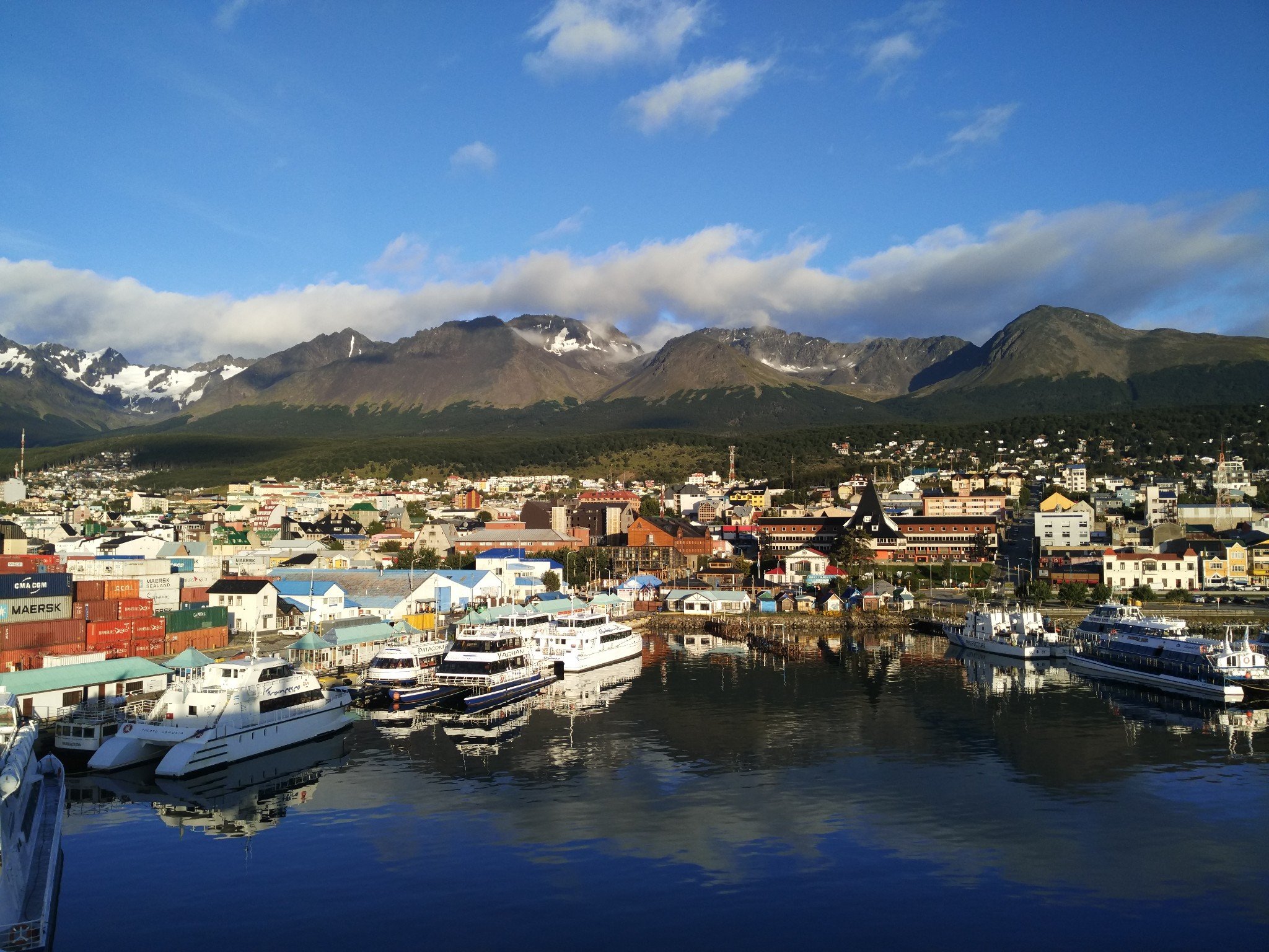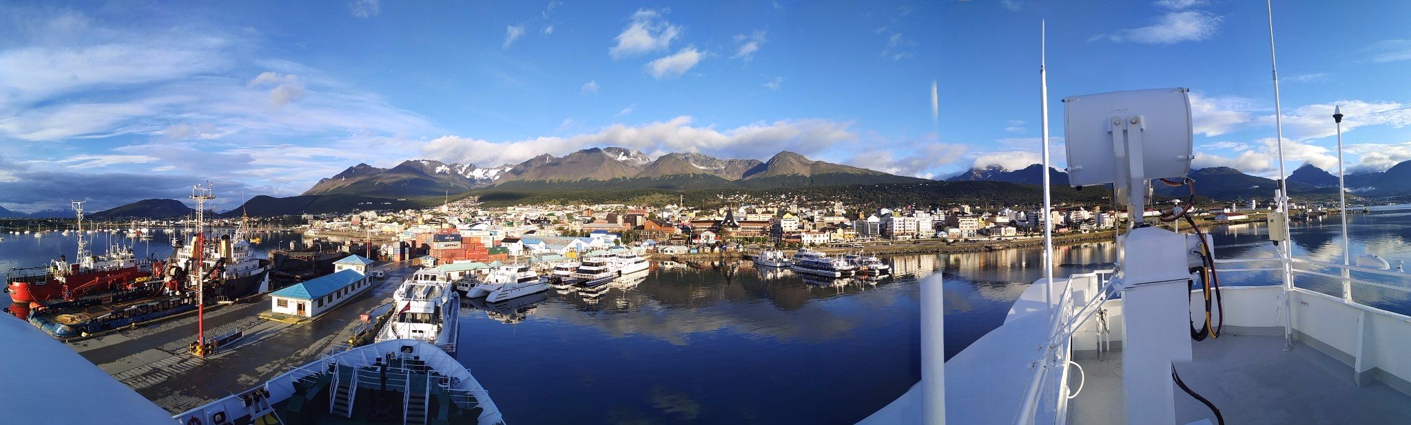 早晨六点的乌斯怀亚在阳光沐浴下又温暖又清新,风景如画说的就是这样。上了甲板船头船尾再走一遍很是留恋。
