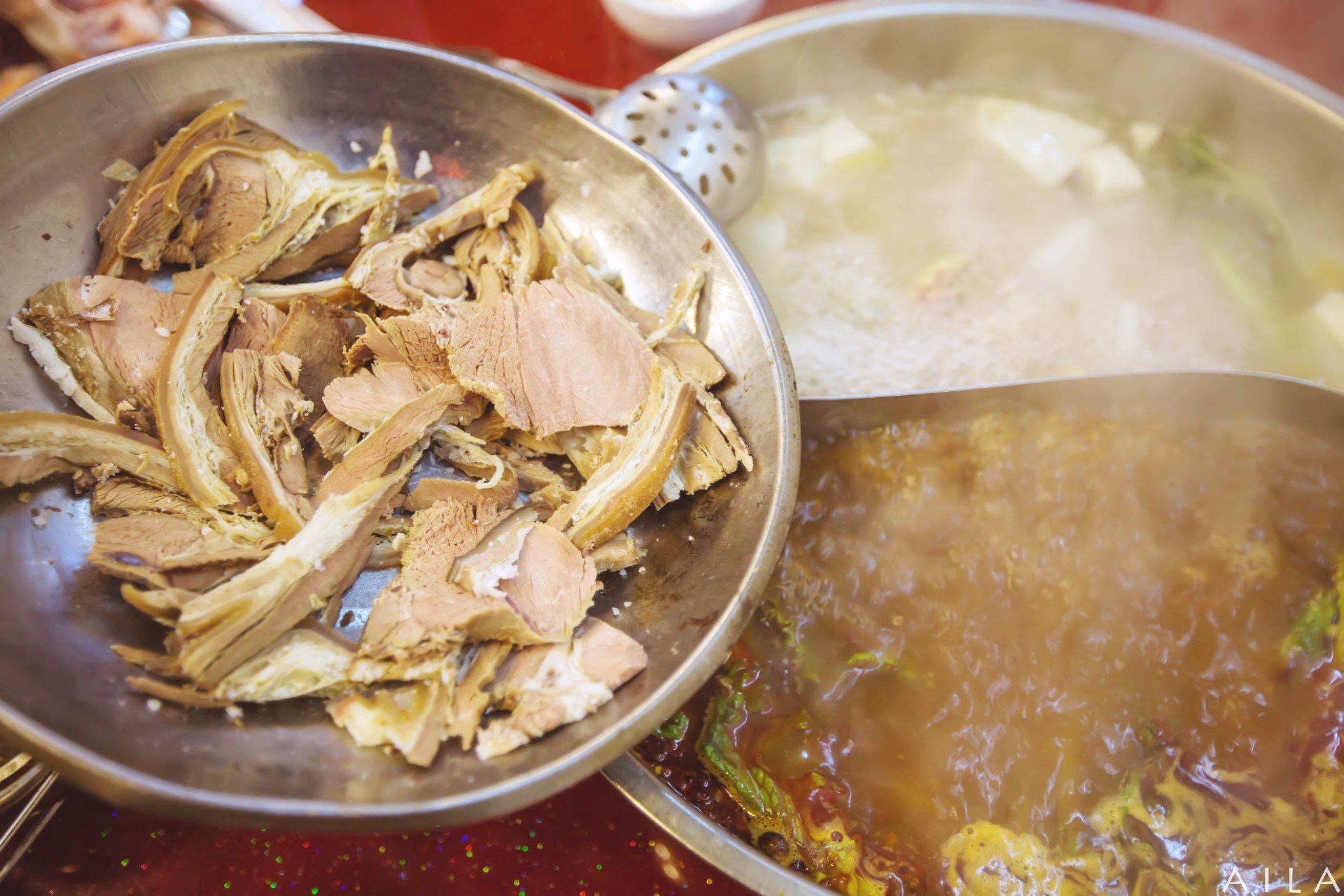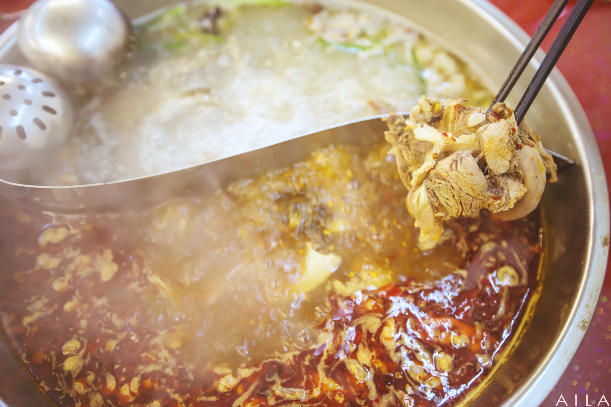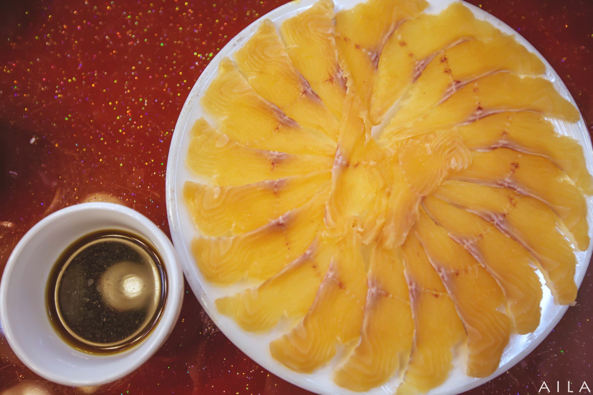 进店的时候,店里只有一桌客人,和旁边的店比起来这家店确实冷清了不少。我们找了一处靠墙的桌子坐下来,老板很热情的过来给我们介绍,我们点了鸳鸯锅,一份黑山羊和一些菜。听老板说她家在这条街开了7、8年了,比周围的店时间长,所以看起来没有别家装修的好,但是味道可以放心吃。有老板这句话,我心里更踏实了。见老板家还有三味鱼,于是果断加了一份三文鱼刺身。老板还主动将我们点的三文鱼的鱼骨和鱼头送给我们,说放进锅里涮一下也好吃。