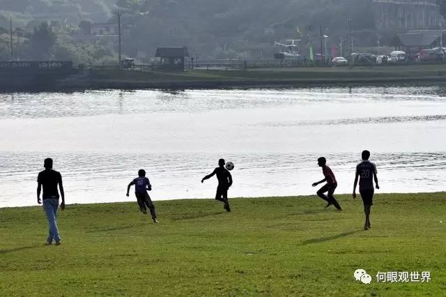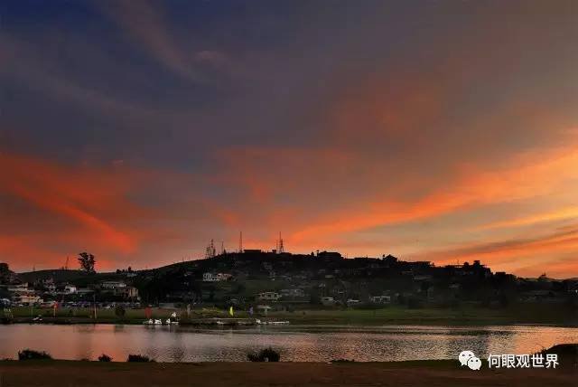努沃勒埃利耶是兰卡的山区城市,还被称为亚洲的花园城市,周围群山环抱,植物丰富。出得酒店几百米,一片湖光山色,原来是格雷戈里湖(Gregory’s Lake)。这个湖始建于1873年,湖畔绿色的草坪上一群本地人在踢足球,马匹在湖边悠扬地吃草。