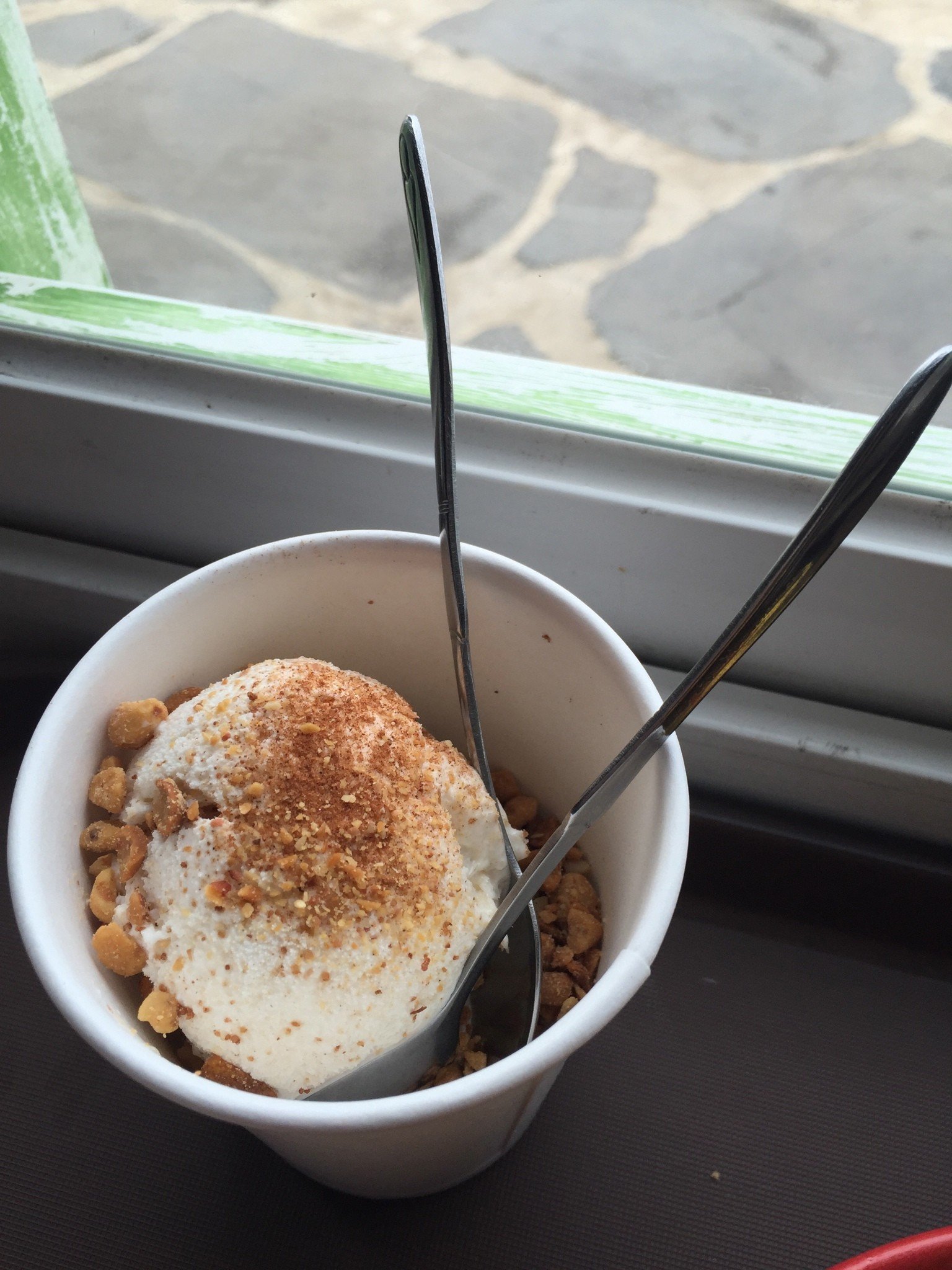 济州岛除了海鲜,就是盛产花生了。花生冰淇凌,很浓郁!