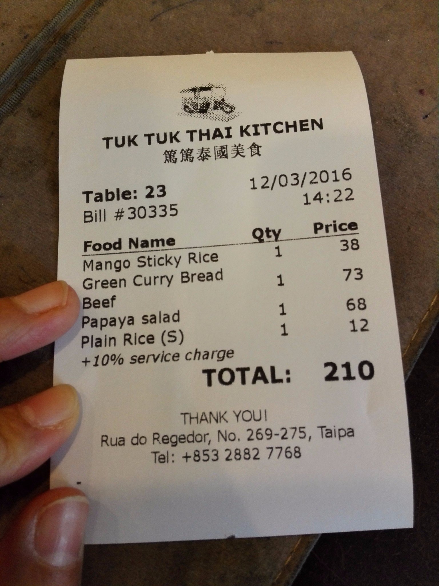 快速通关后,我们坐上了去银河的穿梭巴士,因为官也街就在银河不远的地方。抵达银河后,我们利用离线地图步行到氹仔官也街(大概10分钟)~在去的路上,我们碰巧遇到了这家笃笃泰国美食,其实之前在大众点评上看到过这家,是五星推荐,所以既然路过,那就试试~毕竟当时已经是下午2点了!