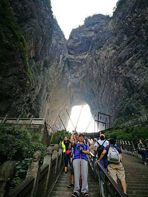 乘坐穿山扶梯来到天门洞了,飞机穿越就是在这里,关于洞的形成也是很多种说法,不知道哪个才是真的,也是天门山的未解之谜