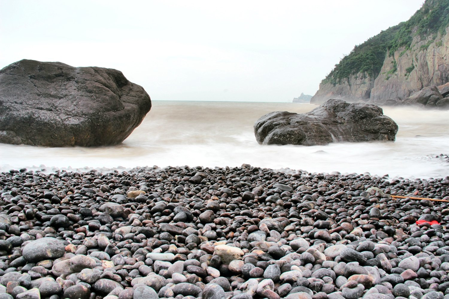 陡峭的岩璧环抱海岸,没有细腻的柔沙,换之以铺天盖地的鹅卵石,似一条巨鳄傲视东海,这便是鳄龙滩给人最与众不同的感觉。