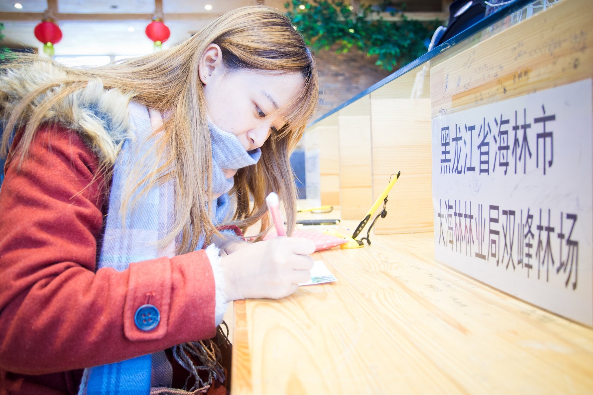 在雪乡简单逛了逛,又回到邮局,将自己带来的明信片写了,没理在旁边虎视眈眈的工作人员。