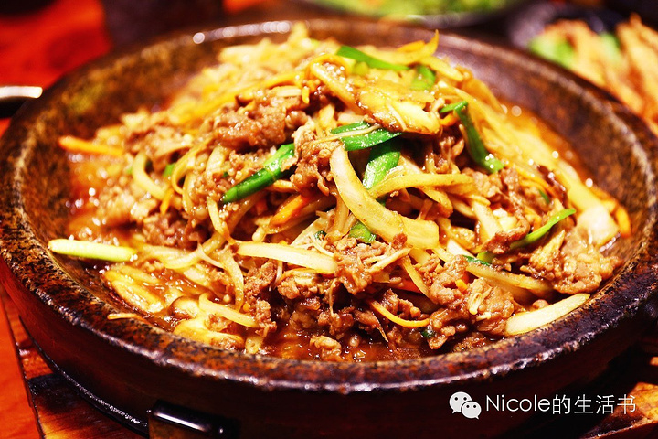 小木屋在山下,距离度假区有点远,打车大概需要20多分钟 这是我在长白山吃的最后一顿,印象颇为美好 那个白白的像牛奶一样的是米酒哟,酸甜酸甜的超好喝 还有那盘让所有人都误以为是面条的土豆丝,是酸辣爽脆的 更有份量超足、好吃到停不下来的烤肉…