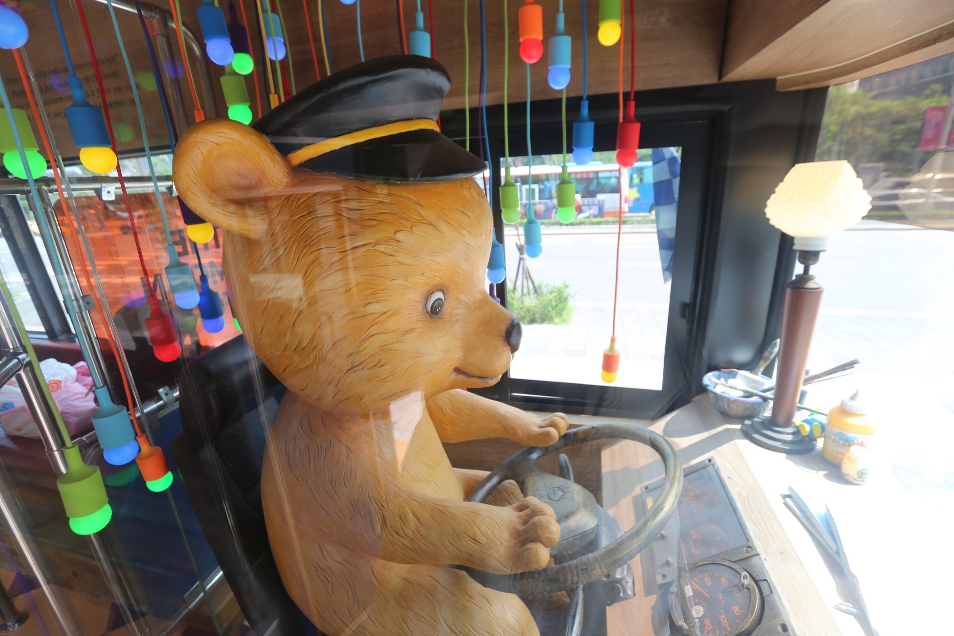 隔着玻璃的小熊司机
