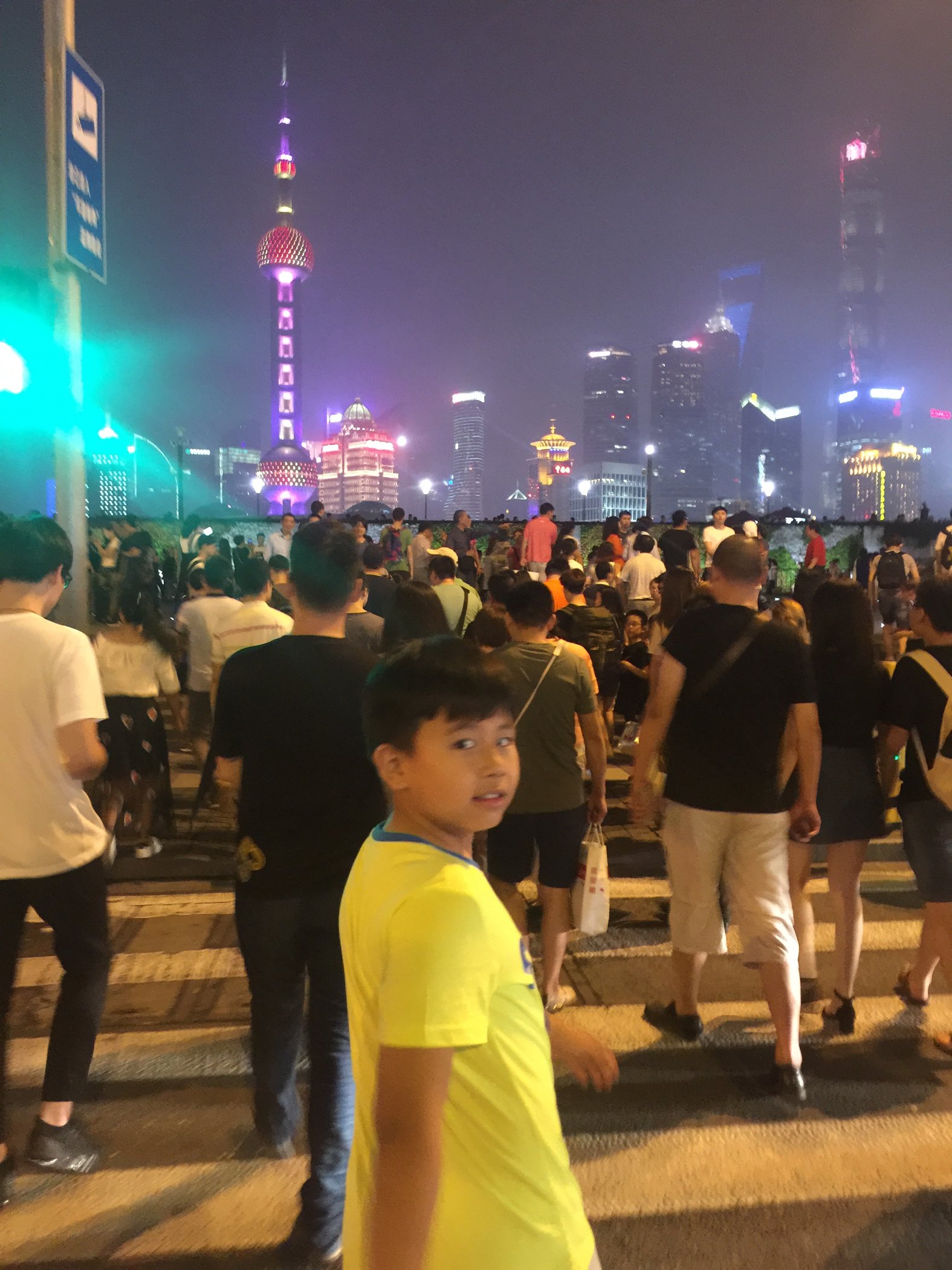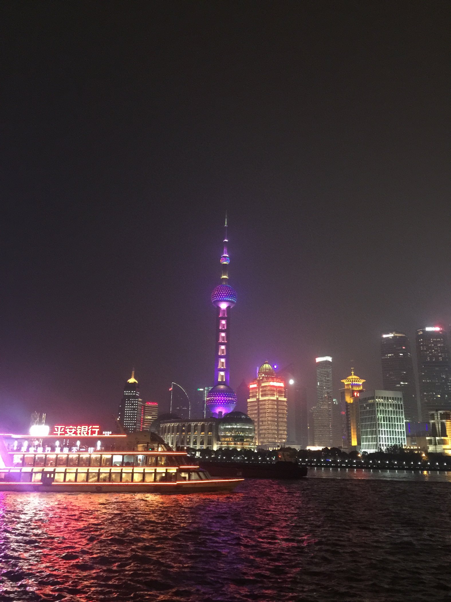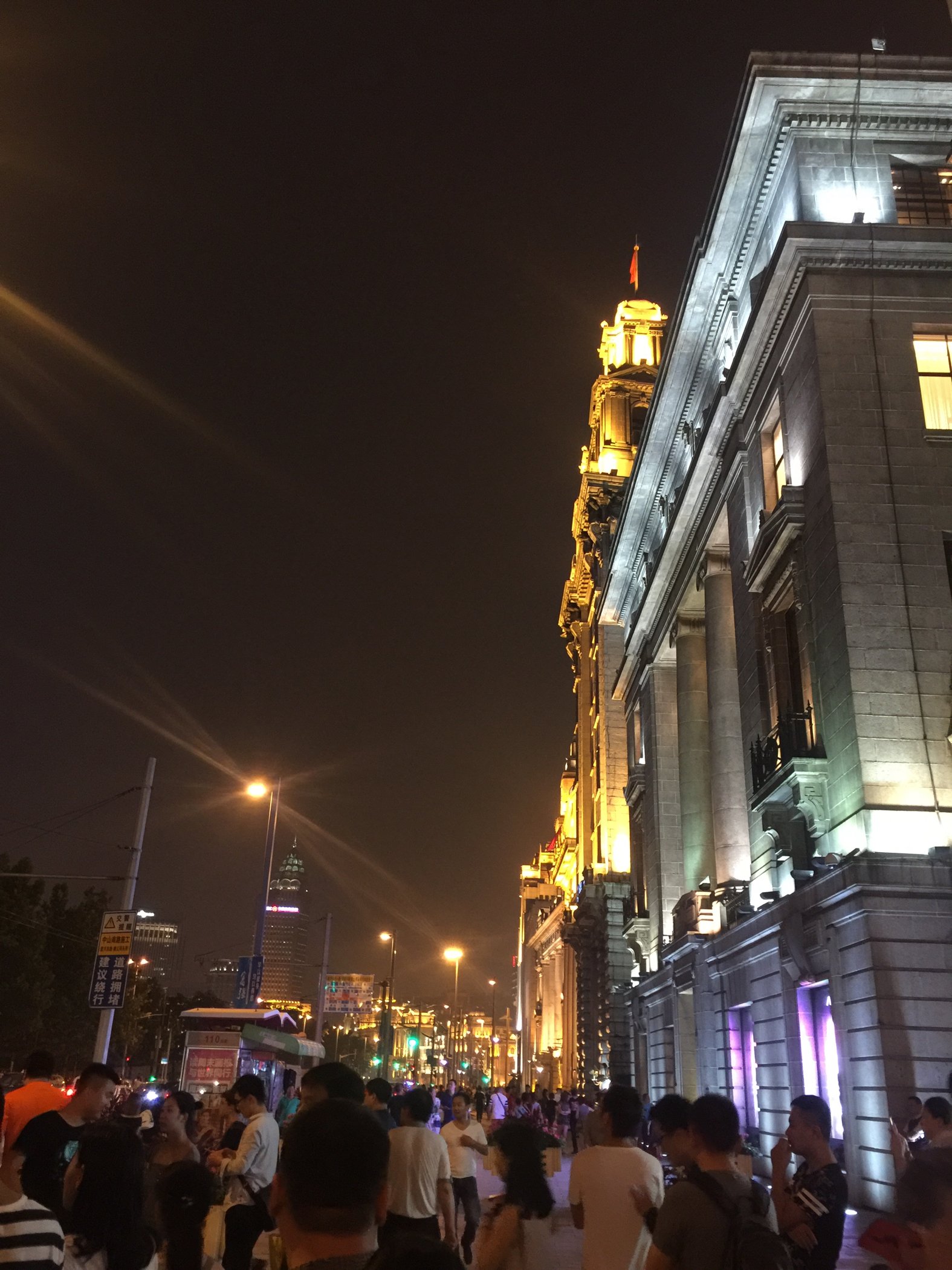 比预计的时间晚了半小时到达外滩!闪烁的霓虹灯,凉丝丝的海风、车水马龙的繁华,真的是大上海