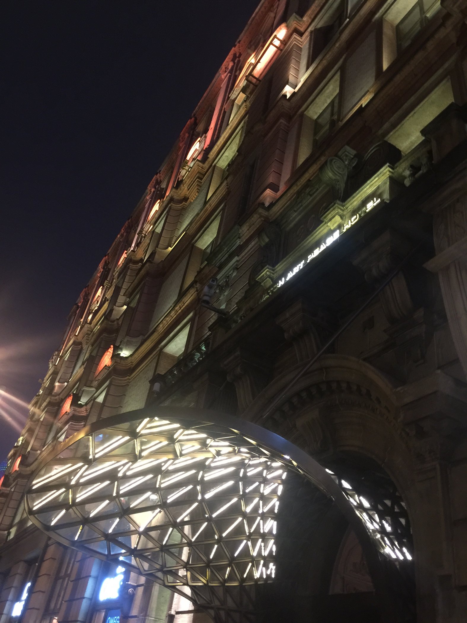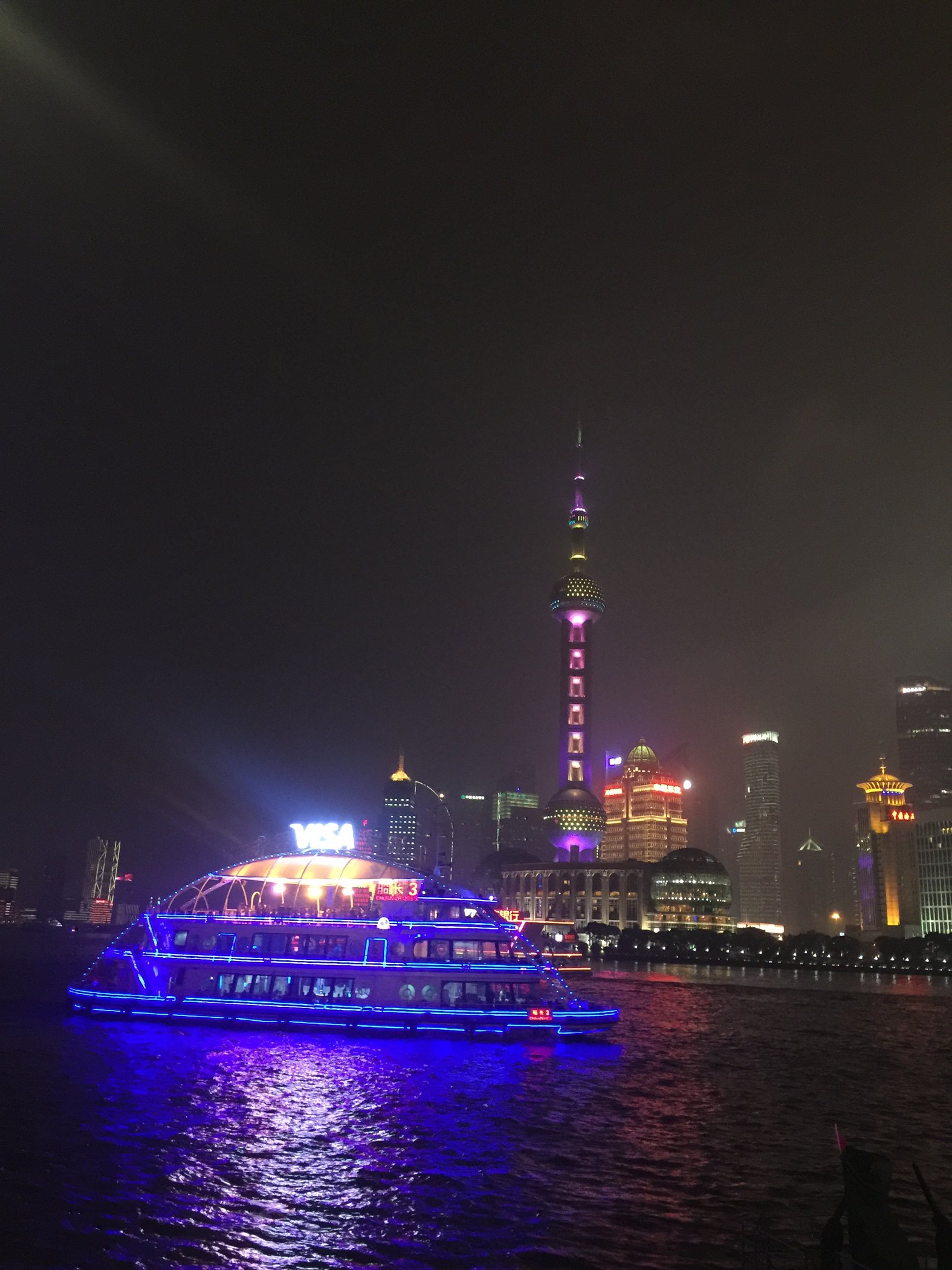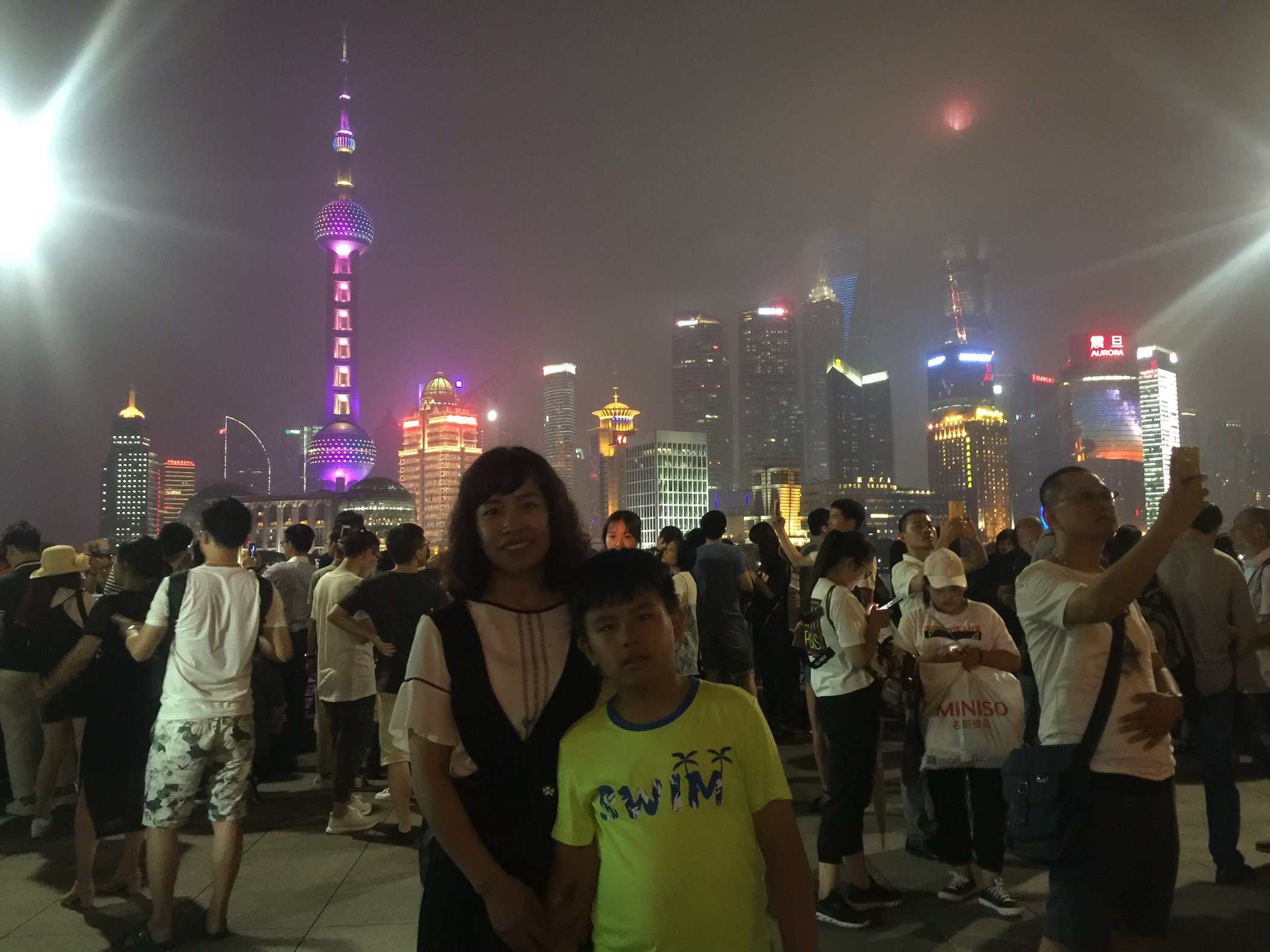 比预计的时间晚了半小时到达外滩!闪烁的霓虹灯,凉丝丝的海风、车水马龙的繁华,真的是大上海